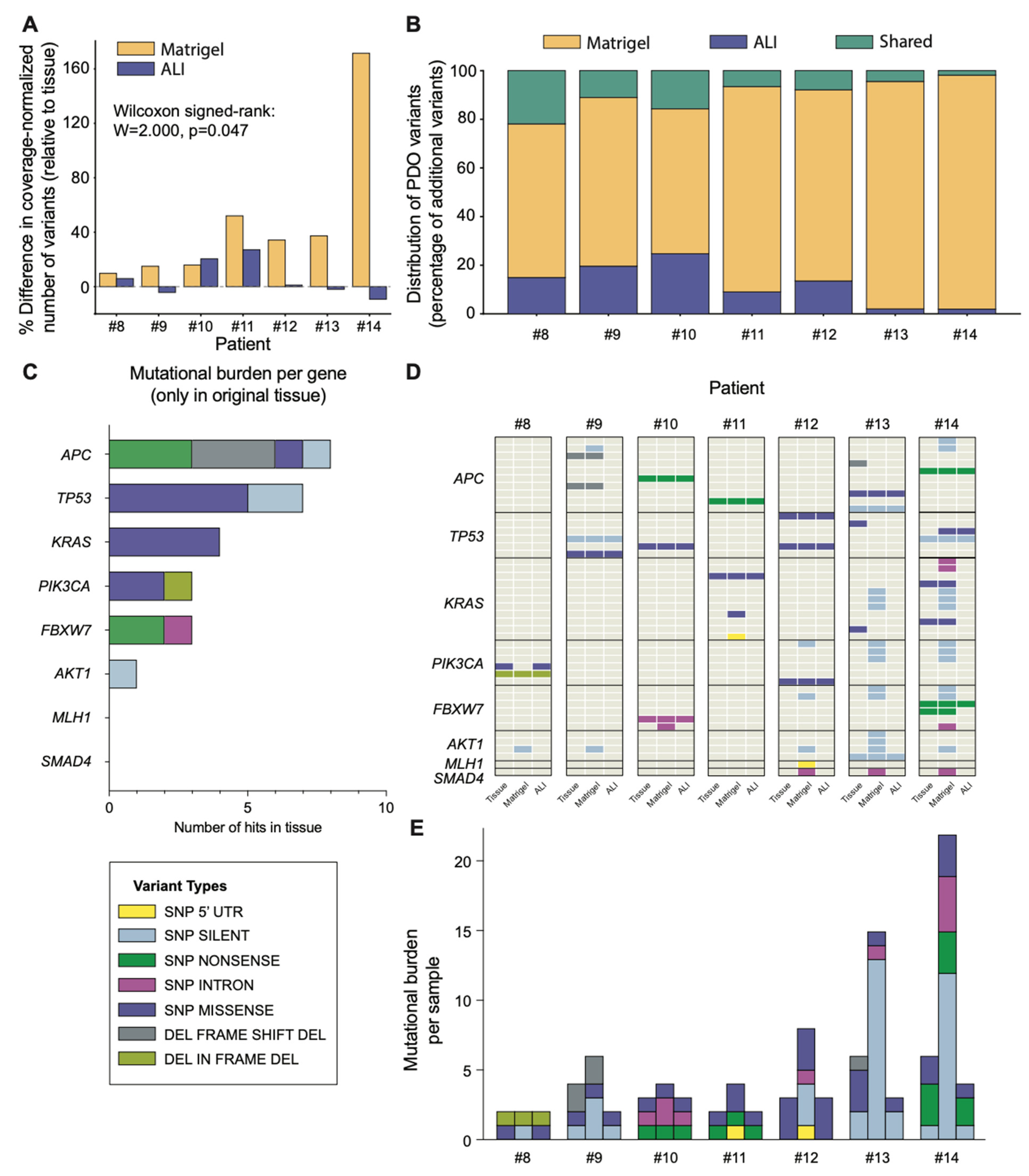 3.3. PDOs Faithfully Preserve the Mutational Landscape of Their Original Primary Tumours