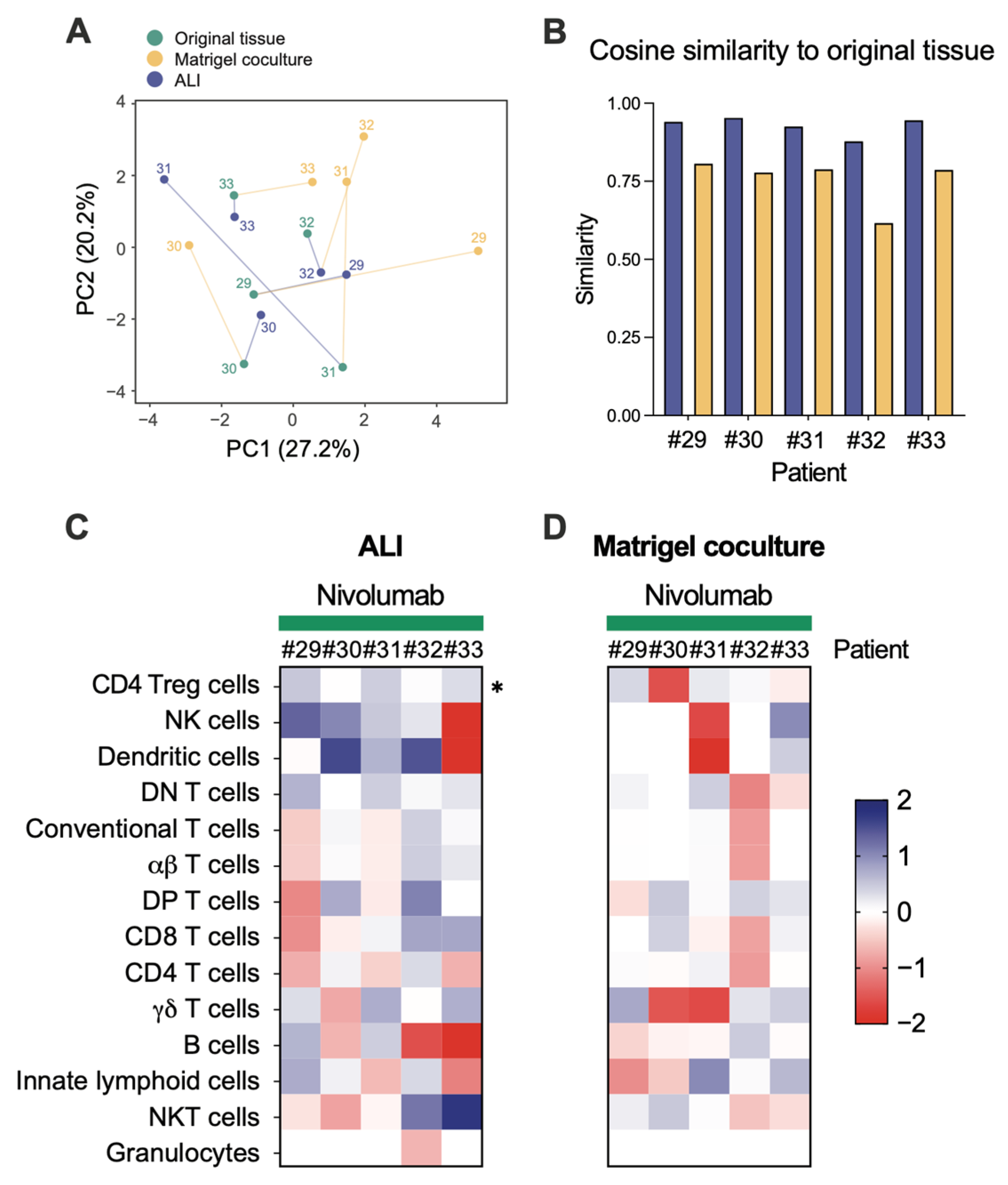 3.2. ALI-PDOs Reproduce the Complexity of the Immune Microenvironment of Original Tissues