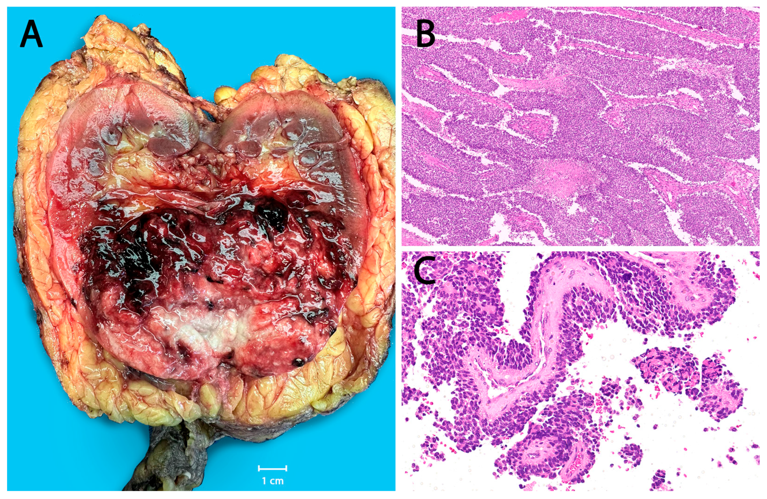 - Baisakh, M.R.; Tiwari, A.; Gandhi, J.S.; Naik, S.; Sharma, S.K.; Balzer, B.L.; Sharma, S.; Peddinti, K.; Jha, S.; Sahu, P.K.; et al. Primary round cell sarcomas of the urinary bladder with EWSR1 rearrangement: A multi-institutional study of thirteen cases with a review of the literature. Hum. Pathol. 2020, 104, 84–95. [Google Scholar] [CrossRef]