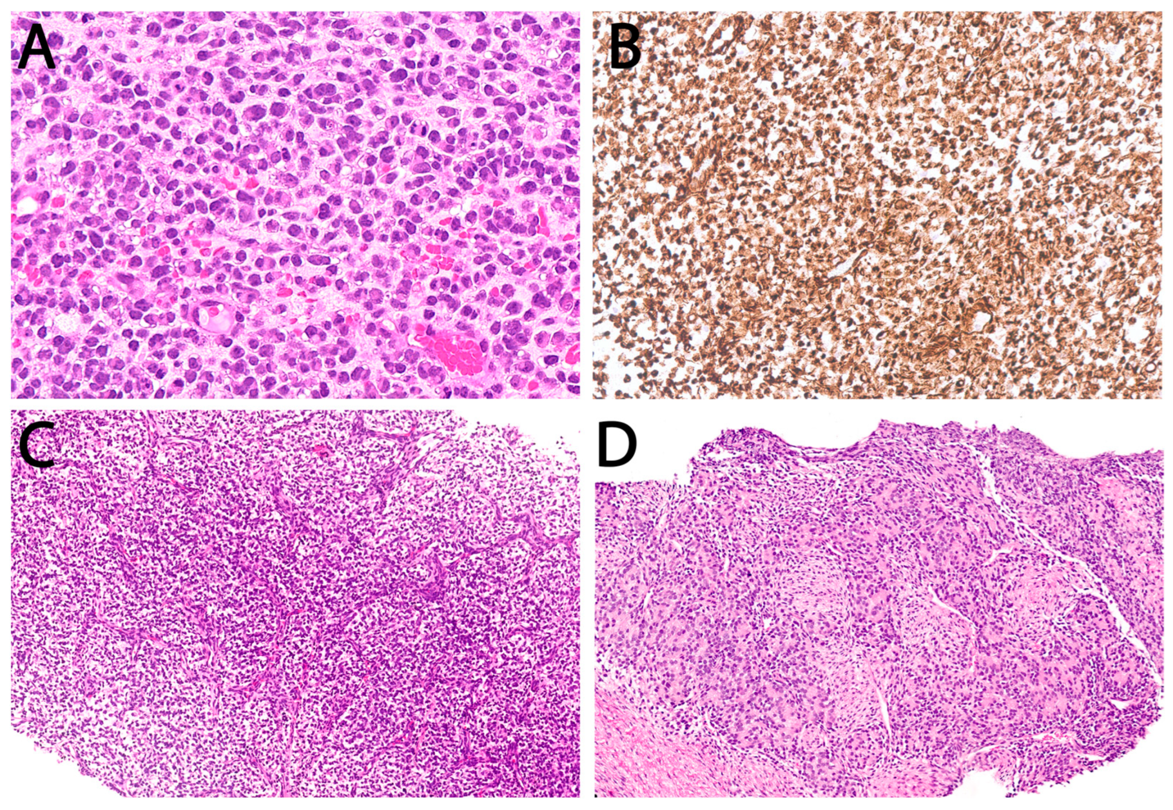 - Yin, T.; Shao, M.; Sun, M.; Zhao, L.; Lao, I.W.; Yu, L.; Wang, J. Gastrointestinal Ewing sarcoma: A clinicopathological and molecular genetic analysis of 25 cases. Am. J. Surg. Pathol. 2024, 48, 275–283. [Google Scholar] [CrossRef]