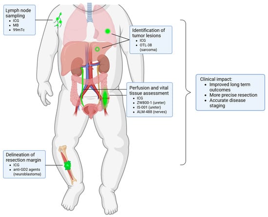 In this review, we provide a comprehensive and up-to-date overview of the current literature on FGS in pediatric oncology, organized by clinical indication and highlighting recent technological and translational advancements in the field (Figure 2). Unique in this review, we specifically focus on the unique challenges inherent to pediatric oncology. Finally, we propose concrete strategies to accelerate clinical translation and critically assess the potential clinical value of FGS in pediatric oncologic surgery.