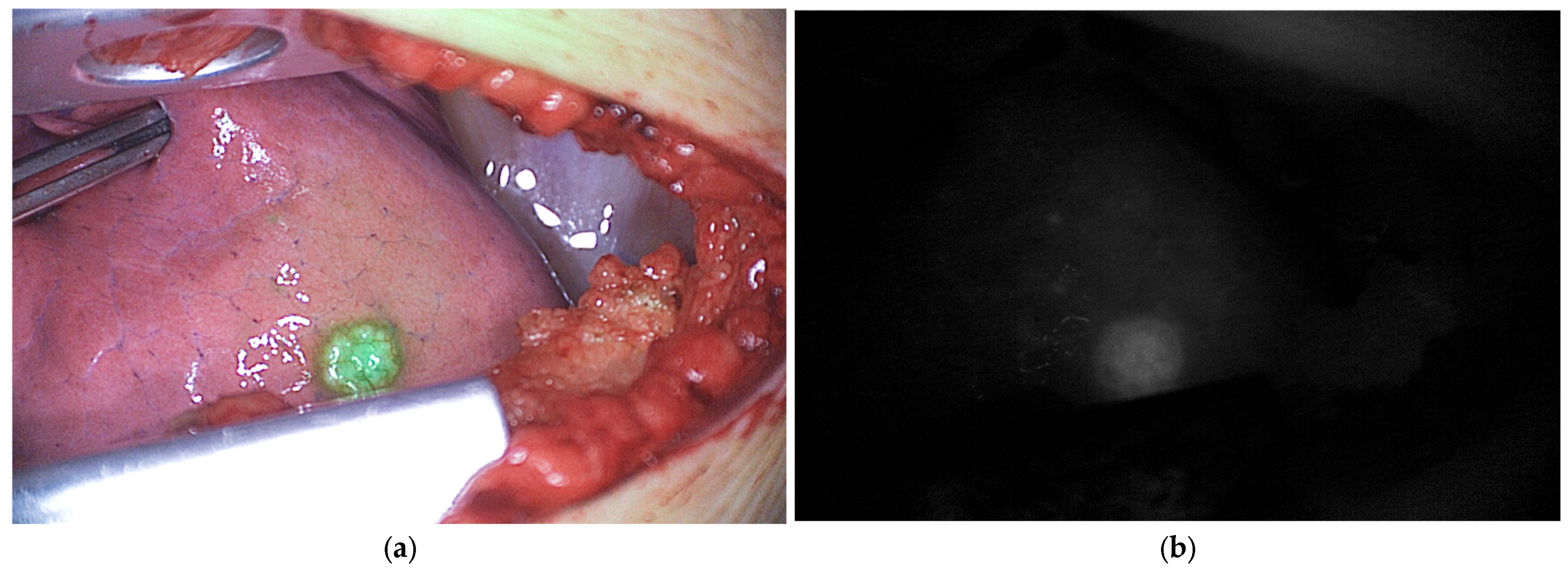 - Mieog, J.S.D.; Achterberg, F.B.; Zlitni, A.; Hutteman, M.; Burggraaf, J.; Swijnenburg, R.-J.; Gioux, S.; Vahrmeijer, A.L. Fundamentals and Developments in Fluorescence-Guided Cancer Surgery. Nat. Rev. Clin. Oncol. 2022, 19, 9–22. [Google Scholar] [CrossRef] [PubMed]