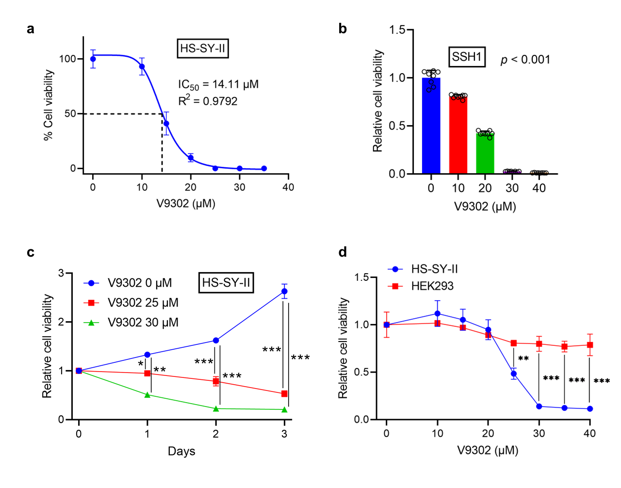 3.3. V9302 Suppresses Cell Viability in SS While Sparing Normal Cells