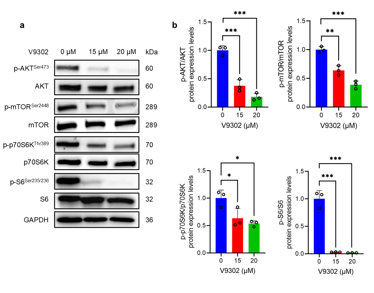 3.4. V9302 Suppresses the AKT/mTOR Signaling Pathway