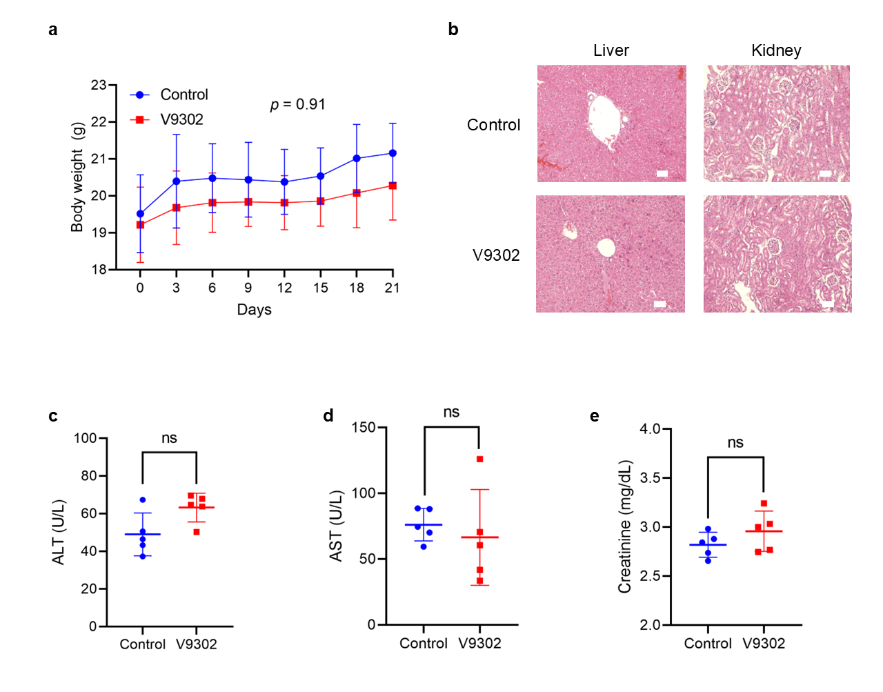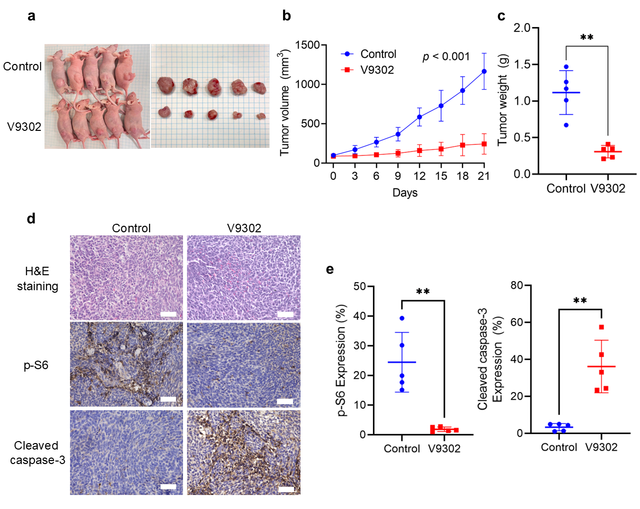 3.6. V9302 Inhibits Tumor Growth in the SS Xenograft Model by Modulating mTOR and Apoptosis Signaling