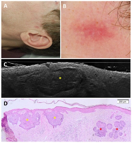 - Peris, K.; Fargnoli, M.C.; Kaufmann, R.; Arenberger, P.; Bastholt, L.; Seguin, N.B.; Bataille, V.; Brochez, L.; del Marmol, V.; Dummer, R.; et al. European consensus-based interdisciplinary guideline for diagnosis and treatment of basal cell carcinoma—Update 2023. Eur. J. Cancer 2023, 192, 113254. [Google Scholar] [CrossRef]