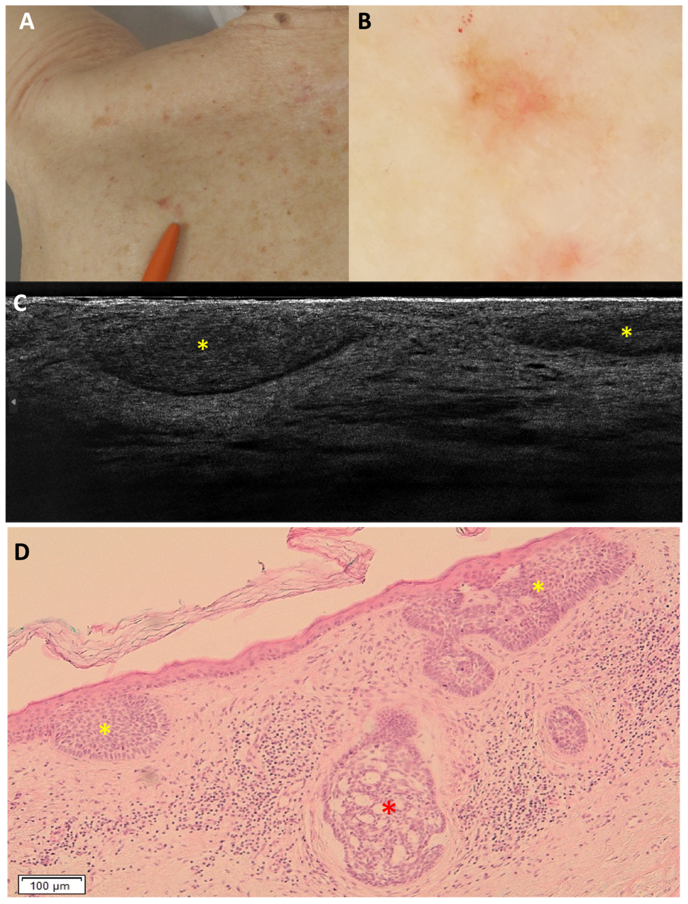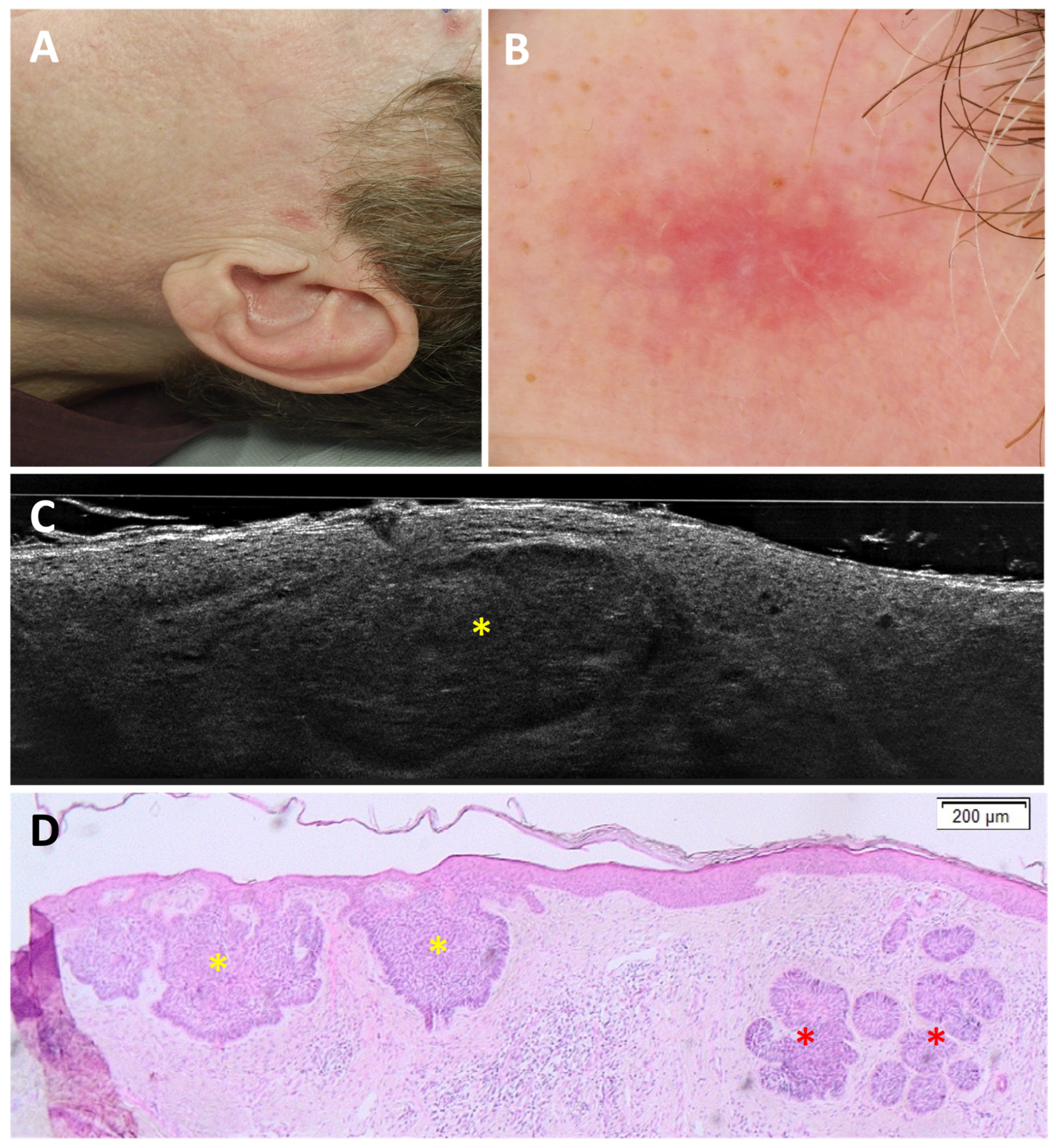 - Lenoir, C.; Diet, G.; Cinotti, E.; Tognetti, L.; Orte Cano, C.; Rocq, L.; Trépant, A.L.; Monnier, J.; Perez-Anker, J.; Rubegni, P.; et al. Line-field confocal optical coherence tomography of sebaceous hyperplasia: A case series. J. Eur. Acad. Dermatol. Venereol. 2021, 35, e509–e511. [Google Scholar] [CrossRef] [PubMed]