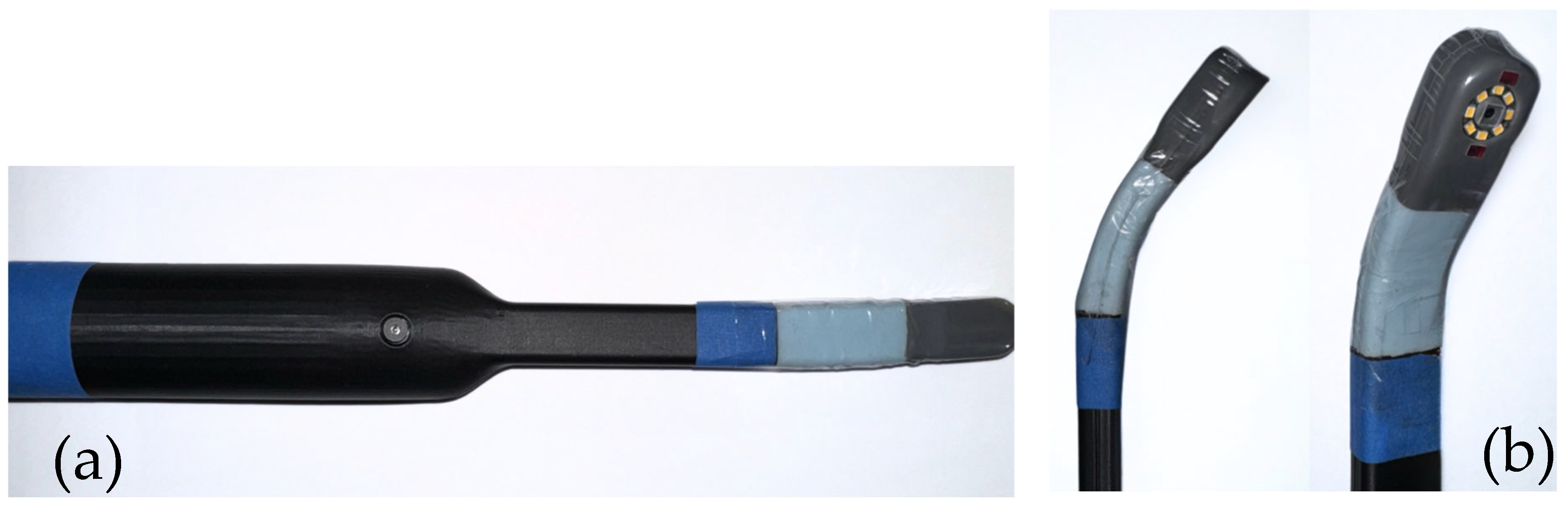 - Uthoff, R.D.; Song, B.; Sunny, S.; Patrick, S.; Suresh, A.; Kolur, T.; Gurushanth, K.; Wooten, K.; Gupta, V.; Platek, M.E.; et al. Small form factor, flexible, dual-modality handheld probe for smartphone-based, point-of-care oral and oropharyngeal cancer screening. J. Biomed. Opt. 2019, 24, 1–8. [Google Scholar] [CrossRef] [PubMed]