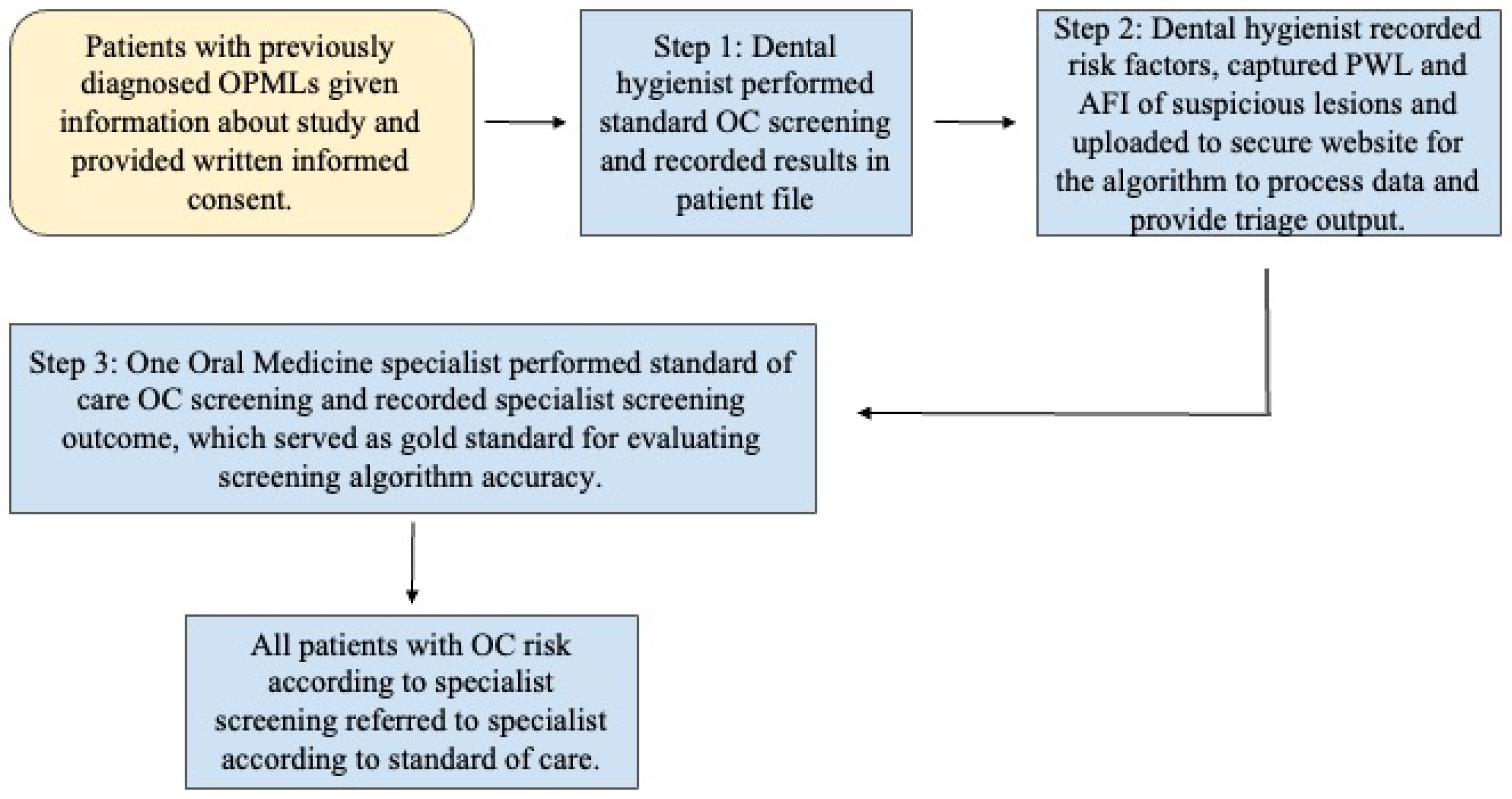 - Yang, S.M.; Song, B.; Wink, C.; Abouakl, M.; Takesh, T.; Hurlbutt, M.; Dinica, D.; Davis, A.; Liang, R.; Wilder-Smith, P. Performance of Automated Oral Cancer Screening Algorithm in Tobacco Users vs. Tobacco non-users. Appl. Sci. 2023, 13, 3370. [Google Scholar] [CrossRef]