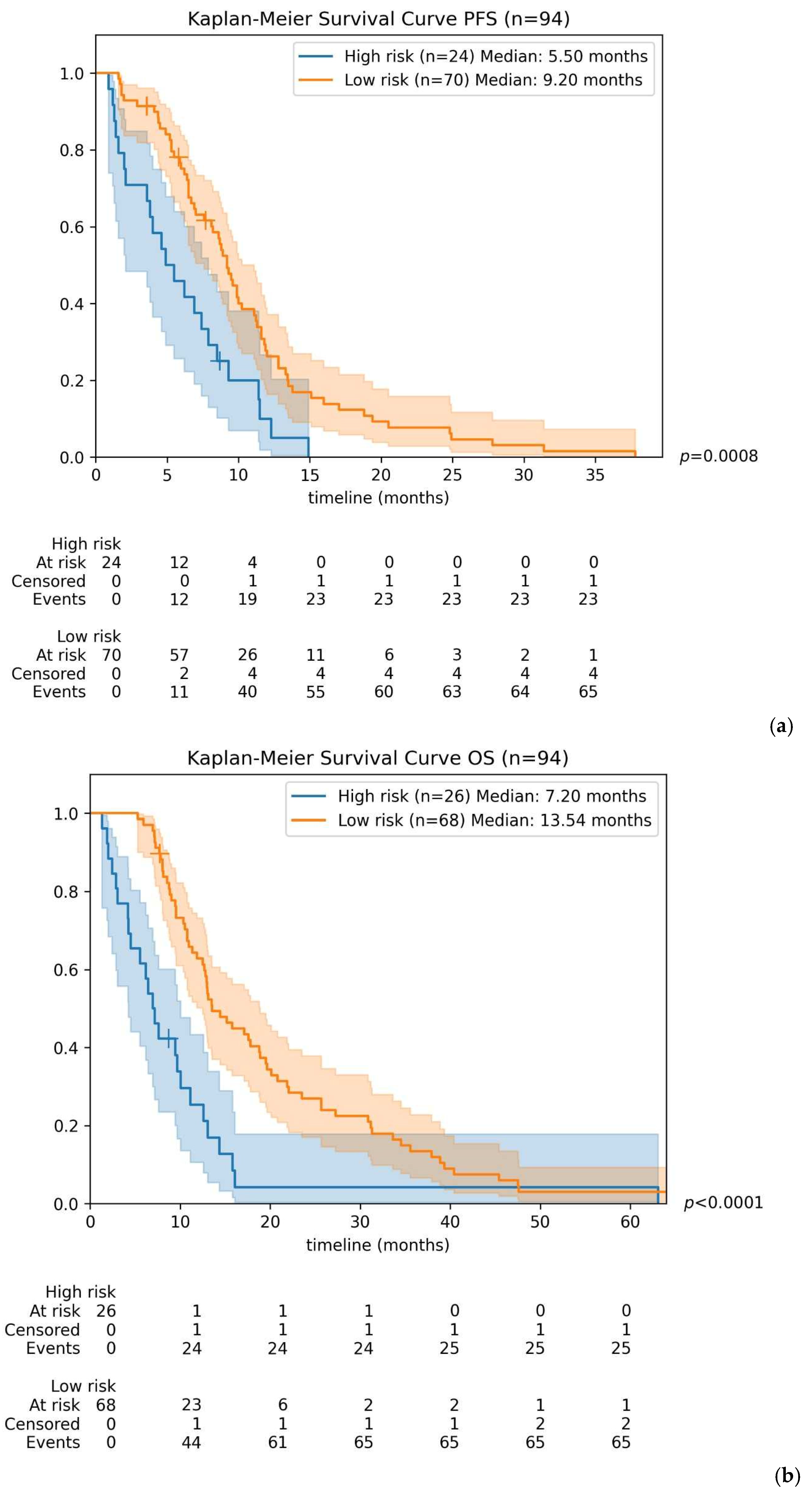 3.5. Survival Model According to a Combined Risk Score