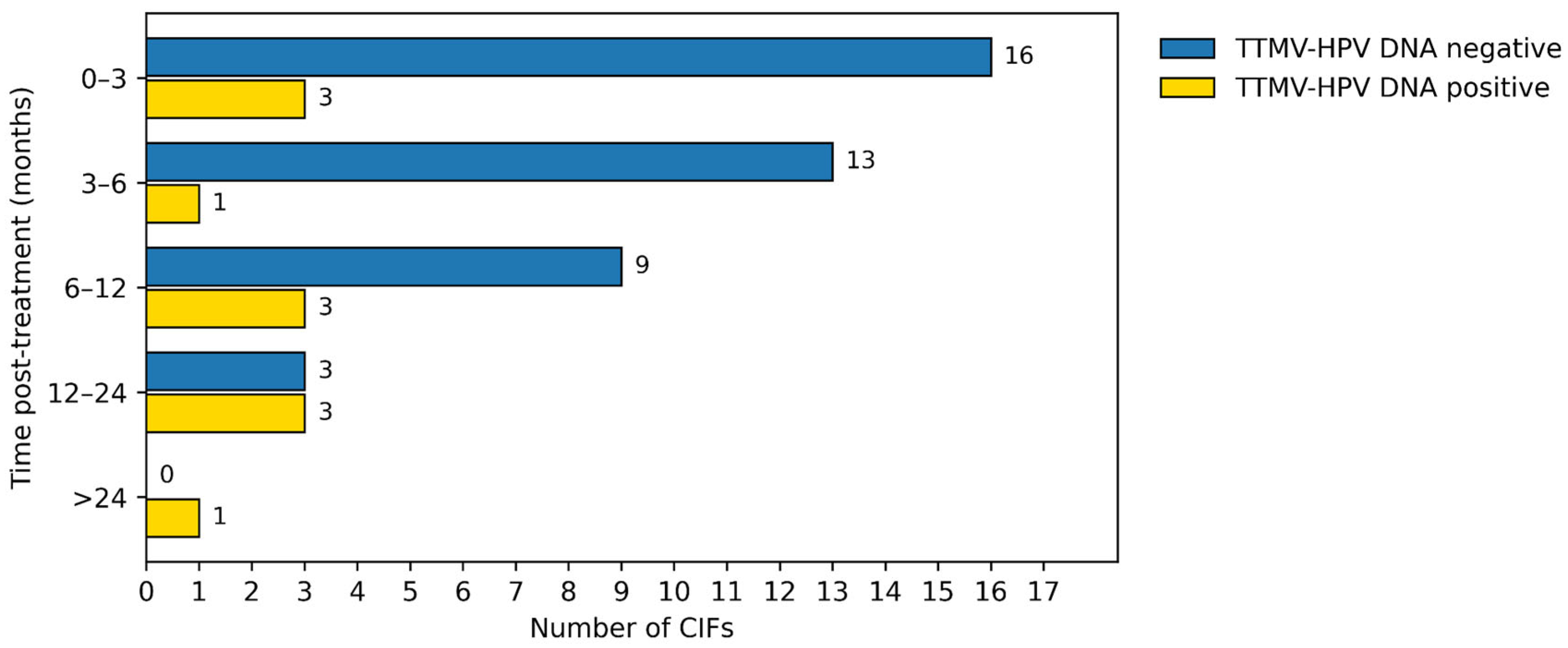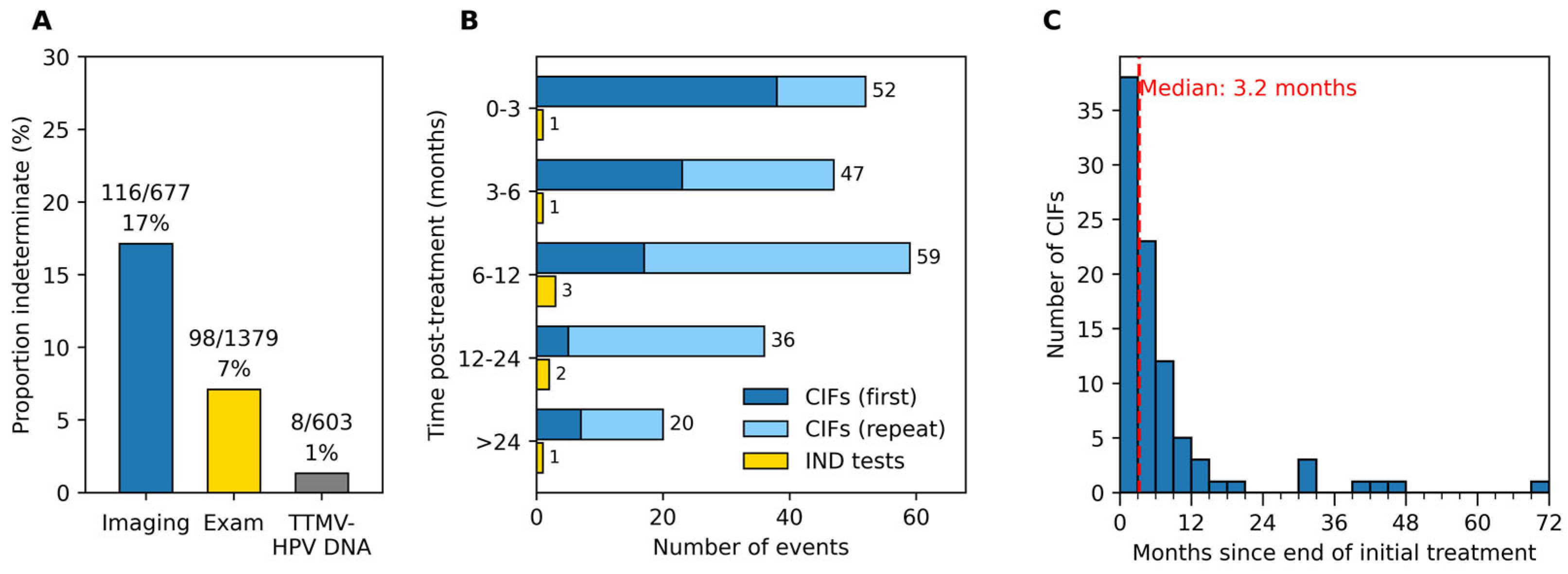 3.2. Frequency and Timing of CIFs and Indeterminate TTMV-HPV DNA Tests
