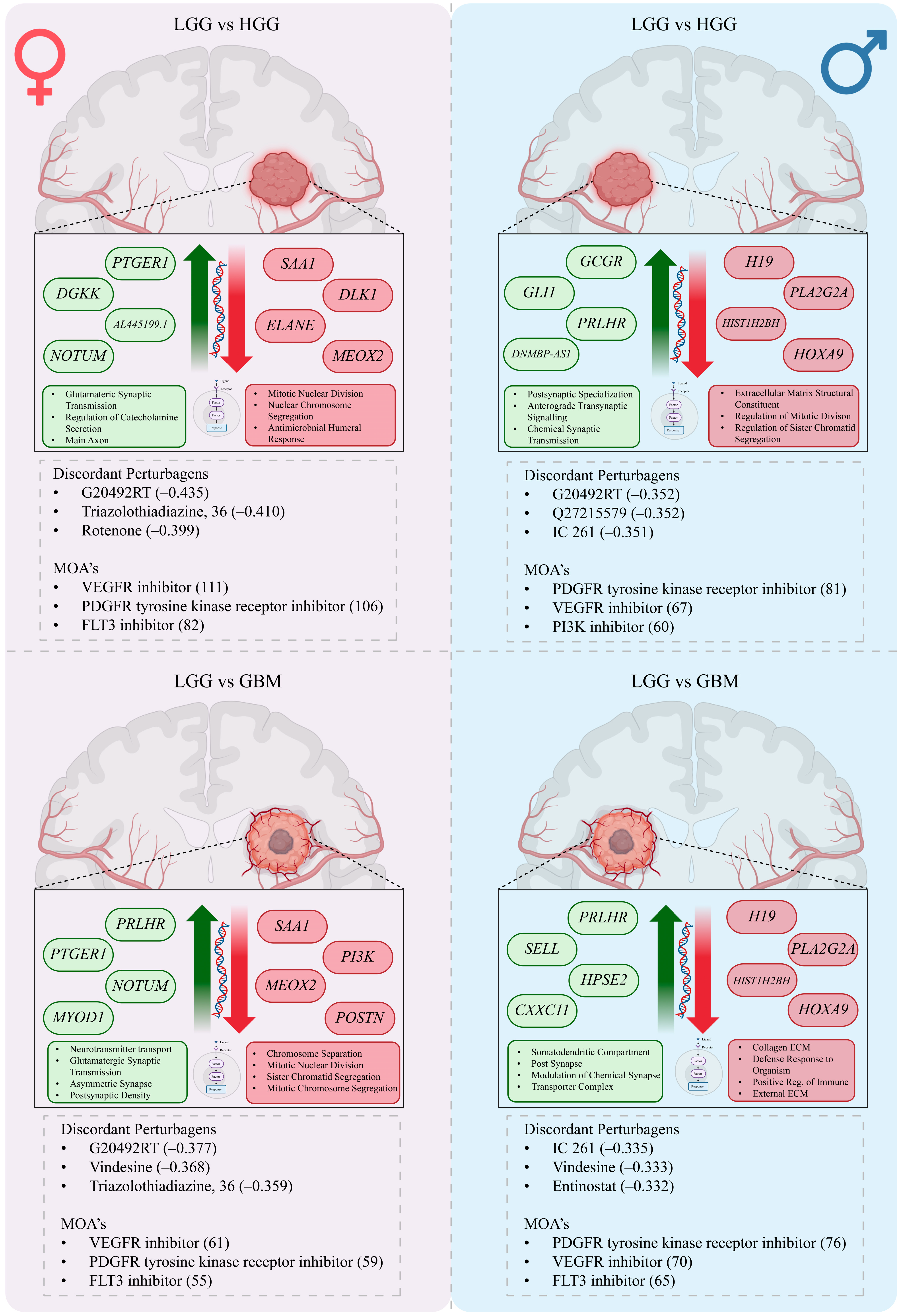 Integrative Transcriptomic and Perturbagen Analyses Reveal Sex-Specific Molecular Signatures Across Glioma Subtypes