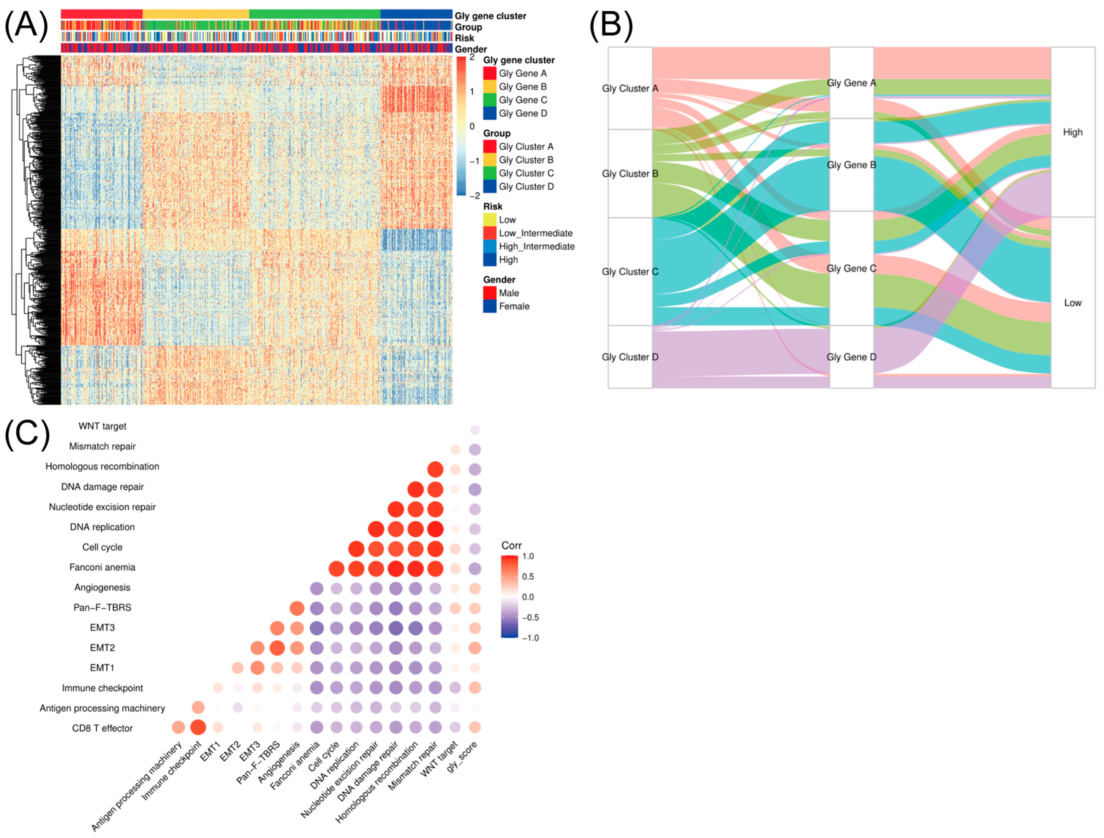 2.5. The Relationship Between the Glycolysis Modification Patterns and Related Biological Processes
