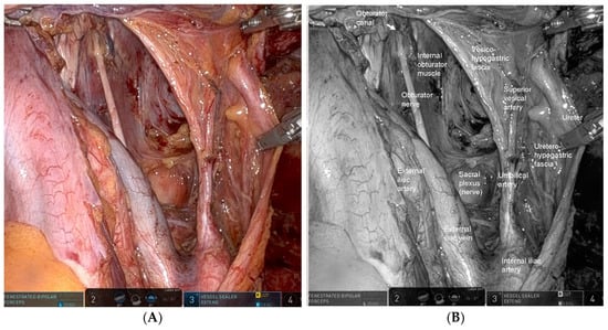 - Takemasa, I.; Hamabe, A.; Takenaka, A.; Kobayashi, H.; Mandai, M.; Kinugasa, Y.; Saika, T.; Shimbo, M.; Morizane, S.; Sekiyama, K.; et al. Standardization of robot-assisted pelvic lymph node dissection-Development of a common understanding of regional anatomy and surgical technique based on cross-disciplinary discussion among colorectal surgery, urology, and gynecology. Asian J. Endosc. Surg. 2024, 17, e13274. [Google Scholar] [CrossRef] [PubMed]