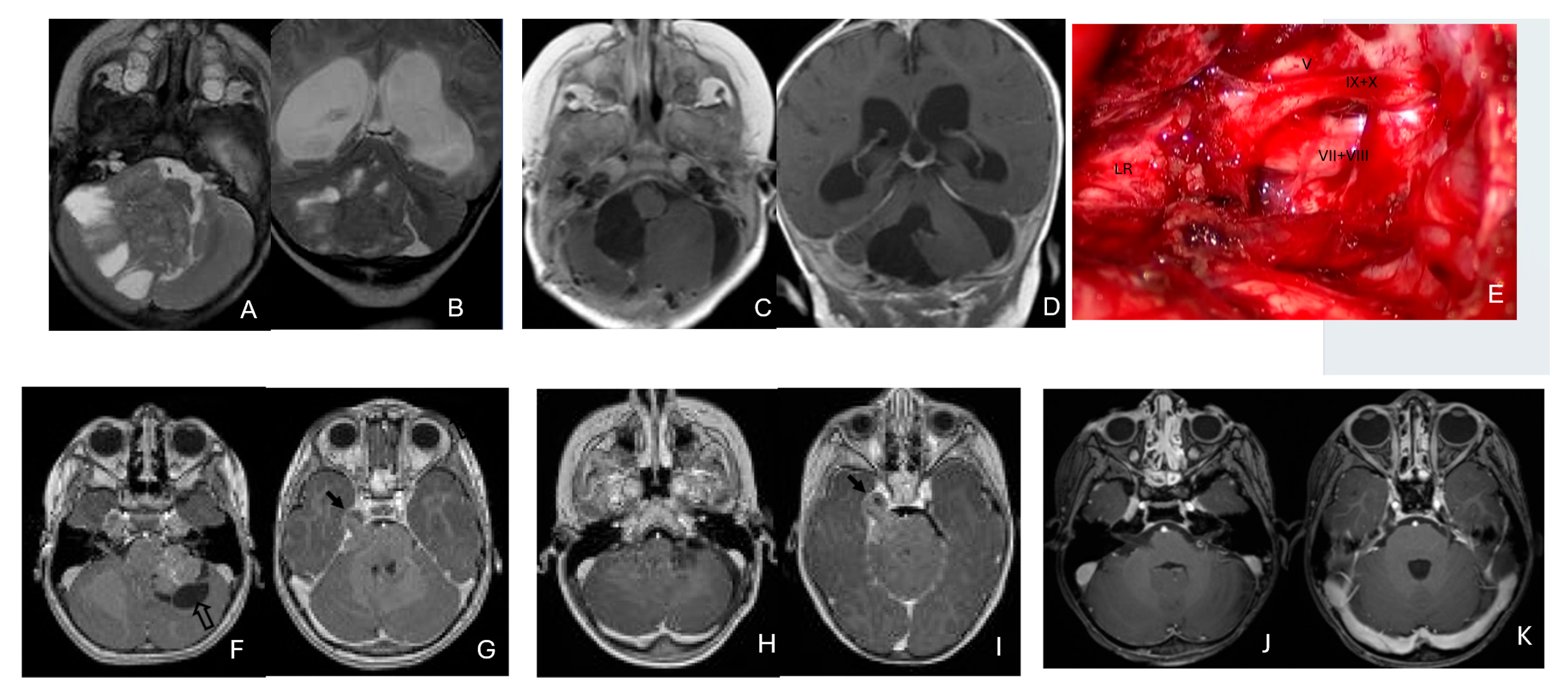 - Wu, P.-S. Atypical teratoid rhabdoid tumor (AT/RT) at the cere bellopontine angle arising from acoustic nerve with facial nerve palsy: Report of a case. Int. J. Clin. Exp. Pathol. 2020, 13, 2377–2380. [Google Scholar]