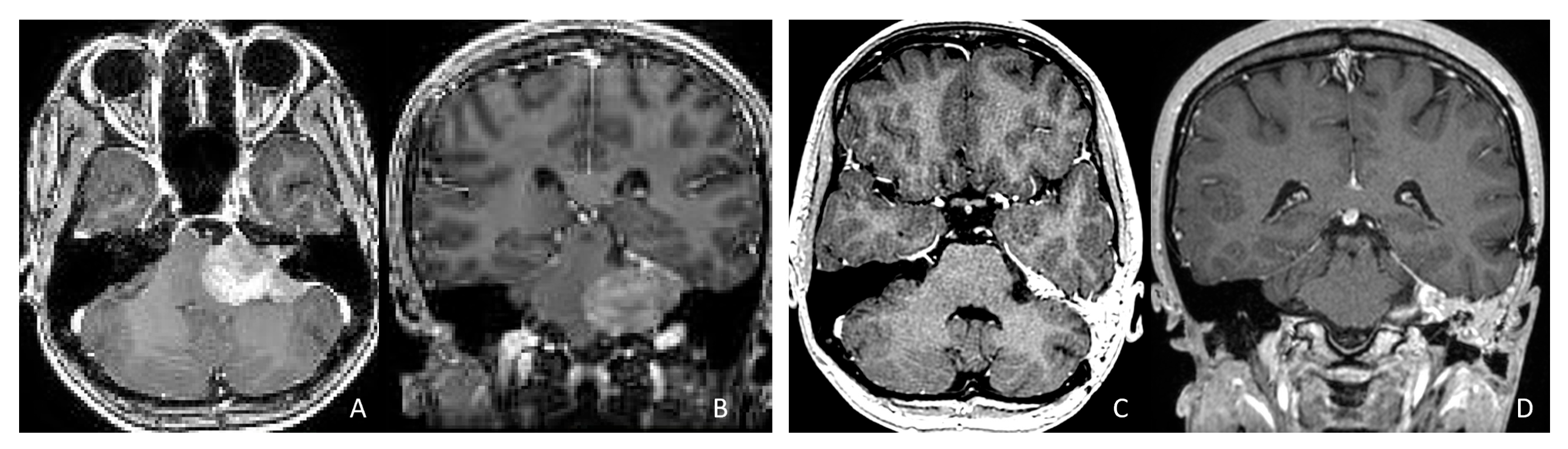 | Site | CPA/cerebellum | basal ganglia/ventricle | basal ganglia/ventricle | SMV ***** | nerves/cerebral cortex |