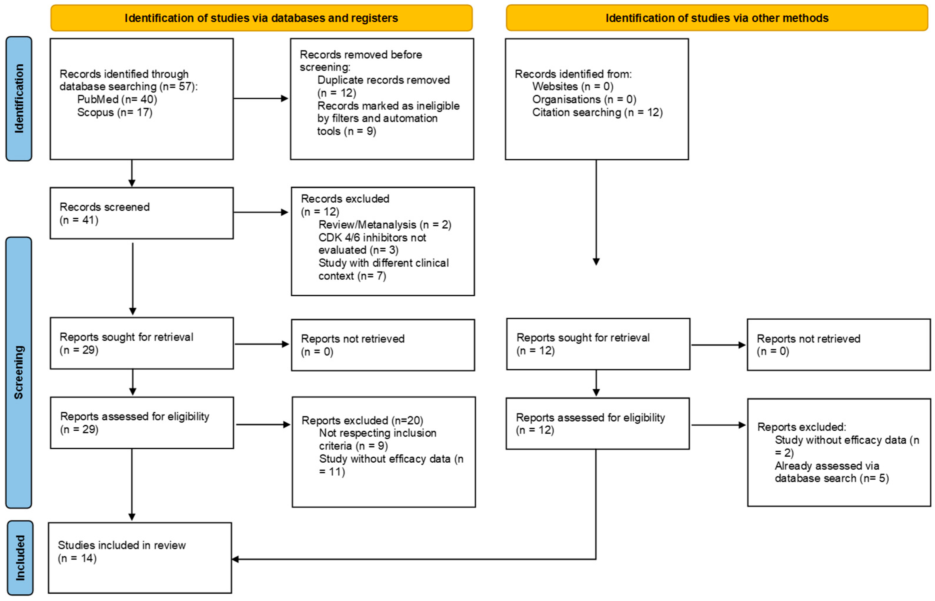 - Studies including adult patients with HR+/HER2− MBC treated with CDK4/6i in combination with ET;
