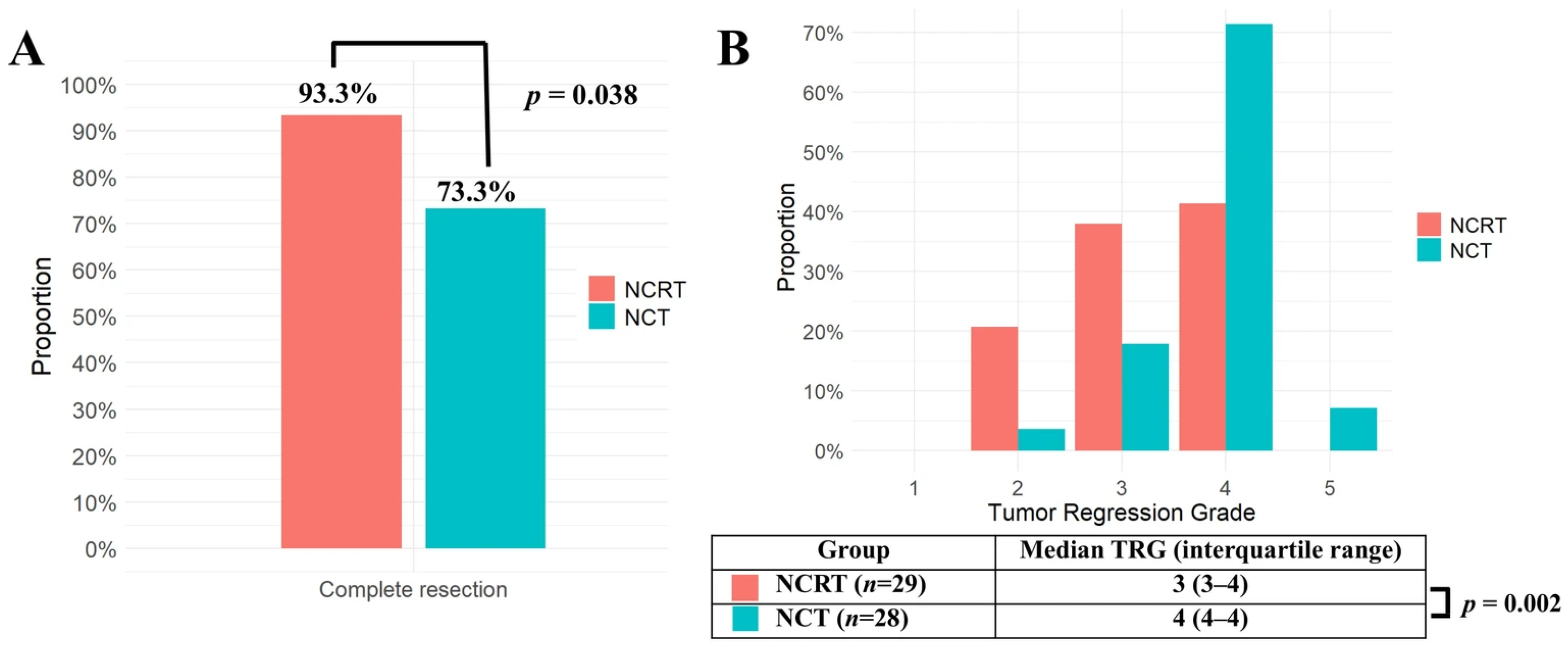 | Total (n = 98) | NCRT (n = 30) | NCT (n = 68) | p | NCRT (n = 30) | NCT (n = 30) | p | |