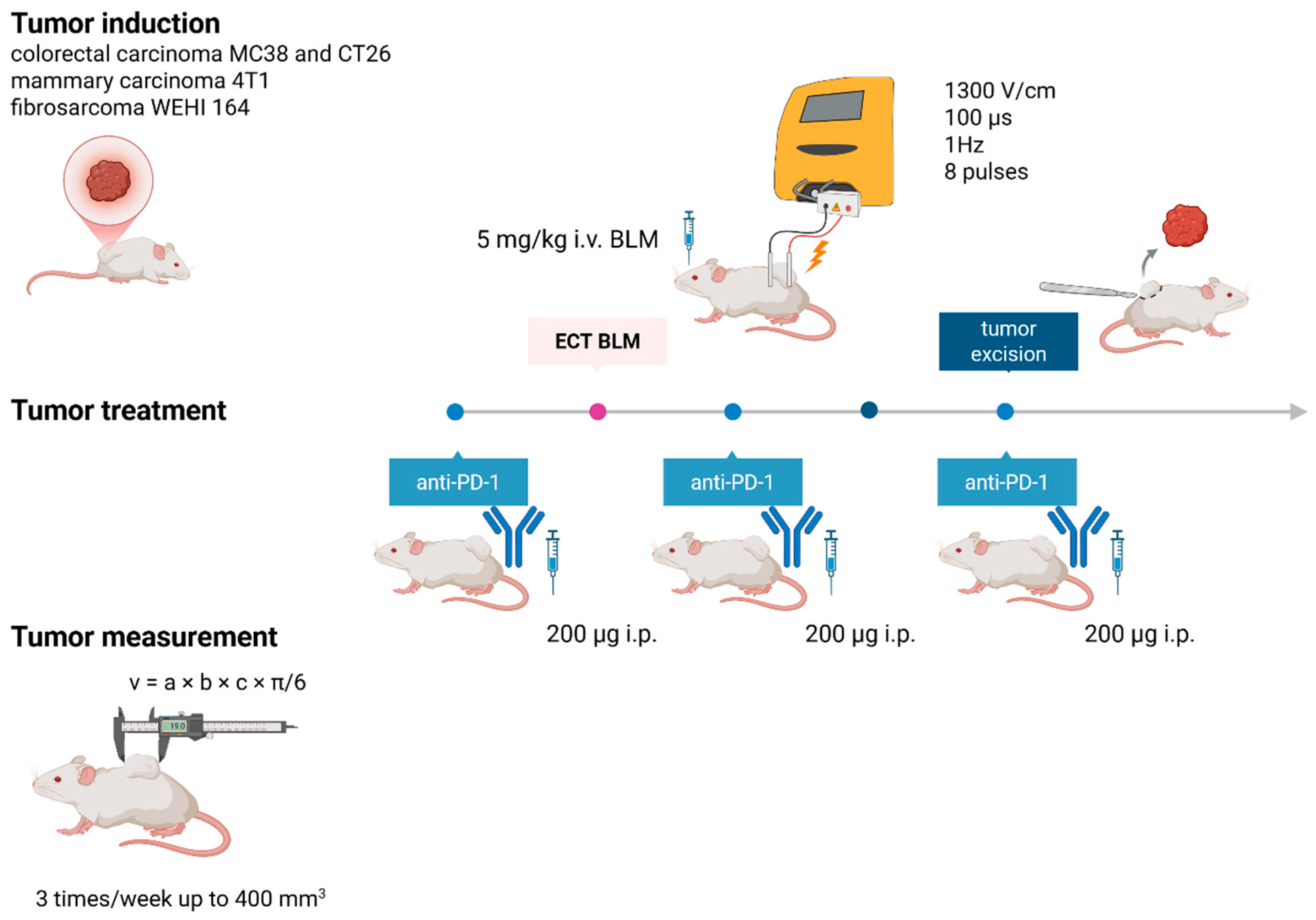 - Ursic, K.; Kos, S.; Kamensek, U.; Cemazar, M.; Miceska, S.; Markelc, B.; Bucek, S.; Staresinic, B.; Kloboves Prevodnik, V.; Heller, R.; et al. Potentiation of Electrochemotherapy Effectiveness by Immunostimulation with IL-12 Gene Electrotransfer in Mice Is Dependent on Tumor Immune Status. J. Control. Release 2021, 332, 623–635. [Google Scholar] [CrossRef]