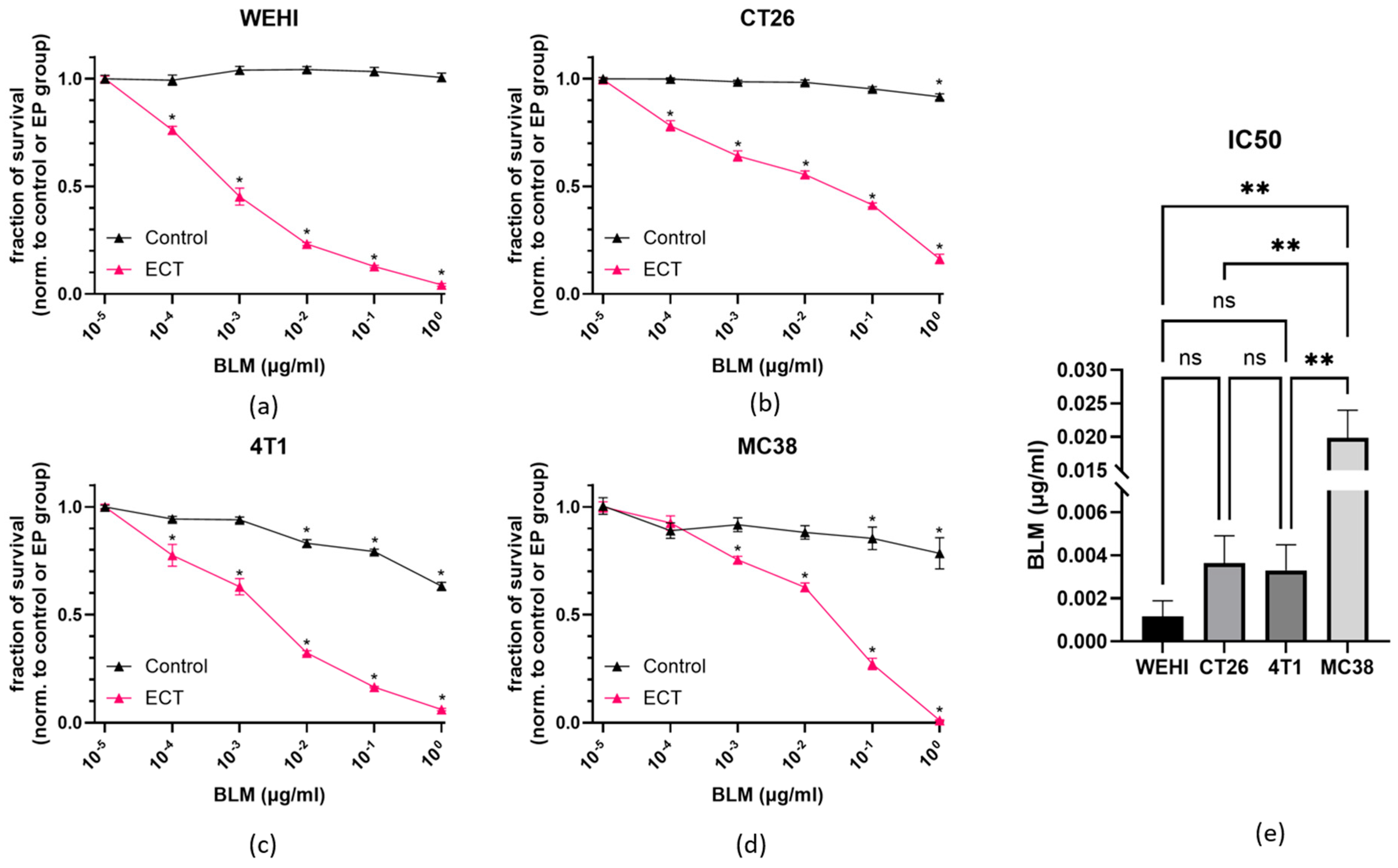 3.1. Intrinsic Sensitivity of Tumor Cells to ECT In Vitro