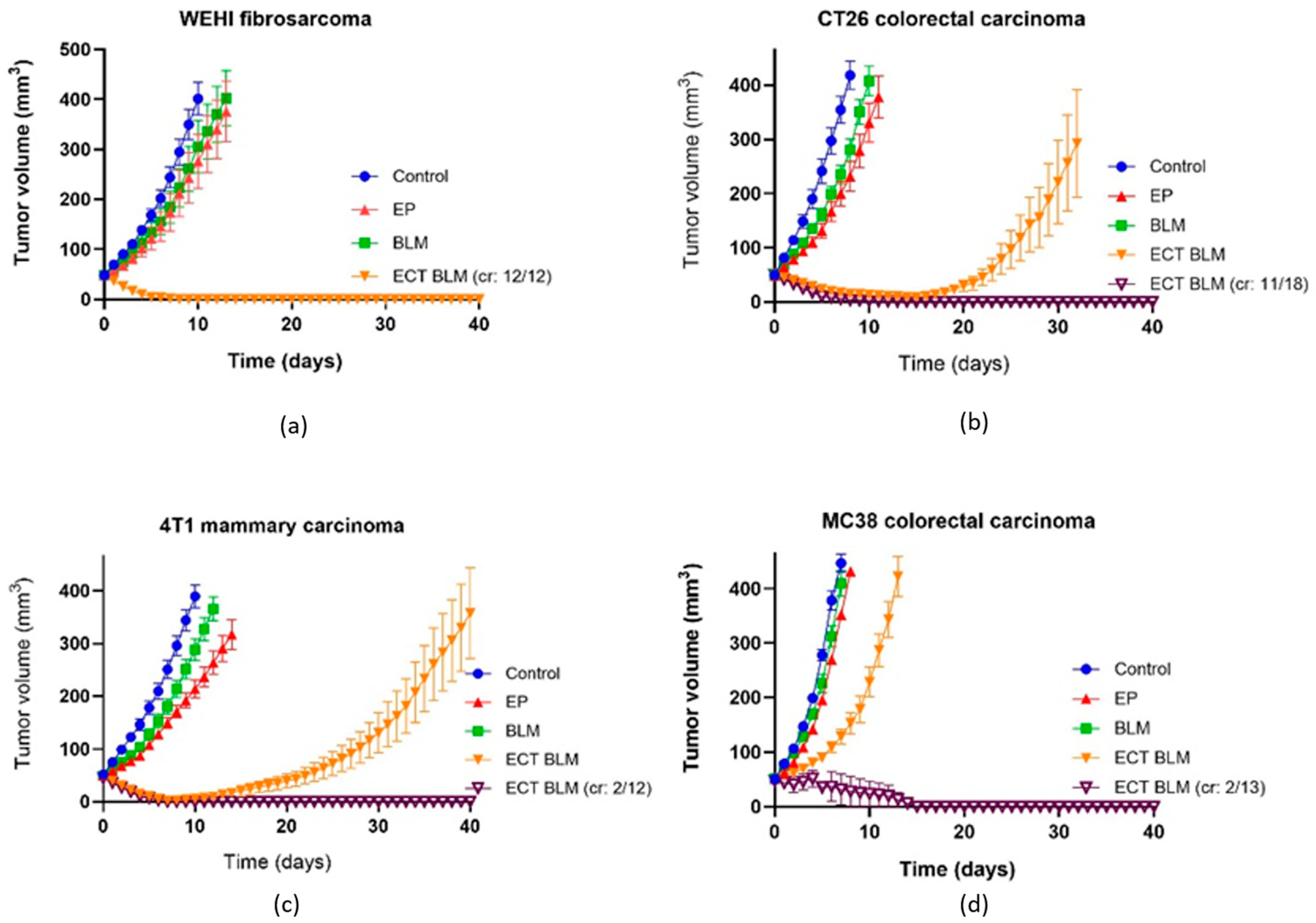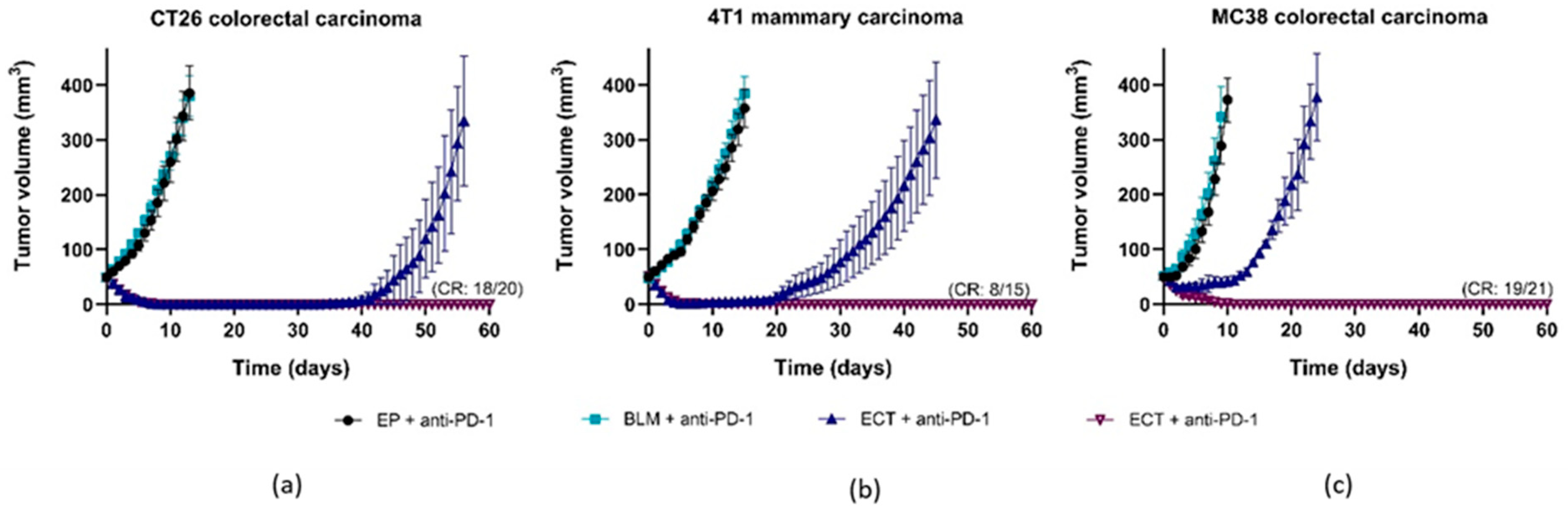 3.2. Effectiveness of ECT in Different Murine Tumors