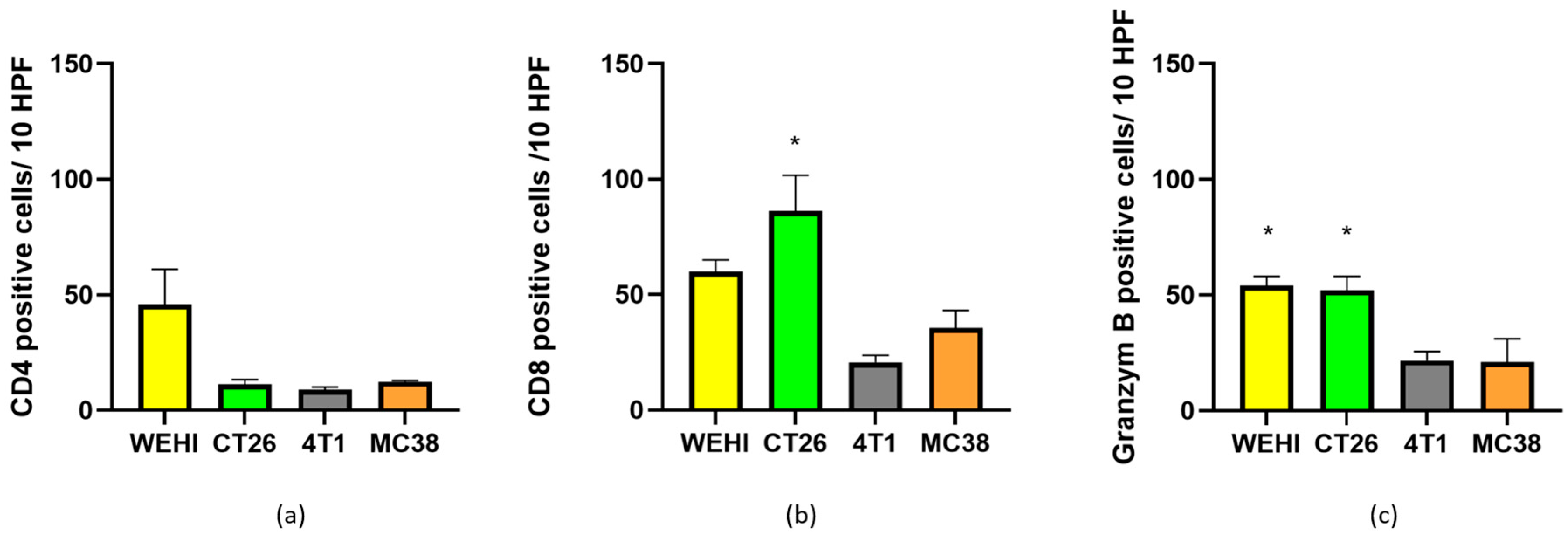| WEHI | CT26 | 4T1 | MC38 | |
