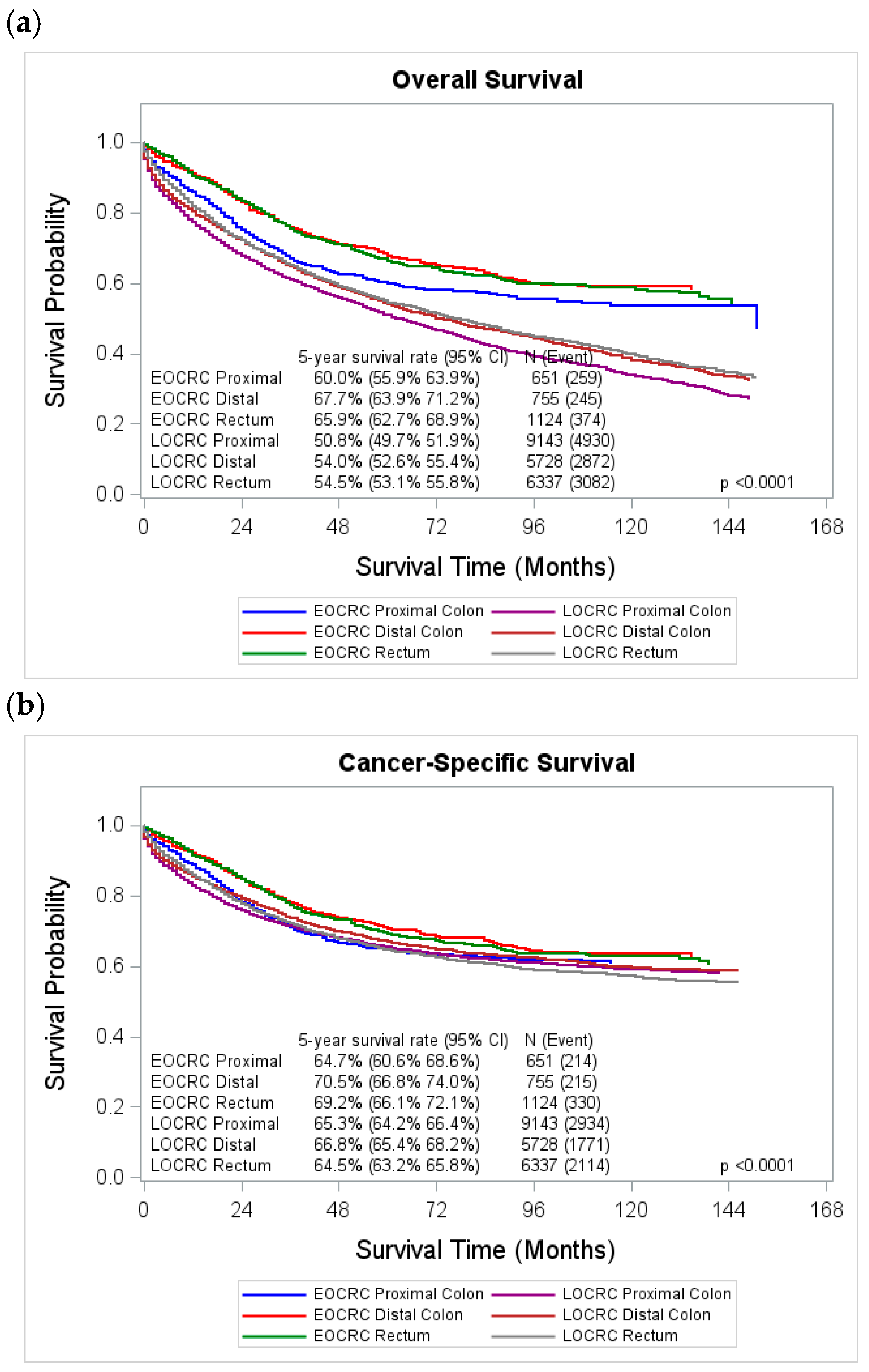 | Proximal colon | 9794 (41.3) | 651 (25.73) | 9143 (43.11) | |