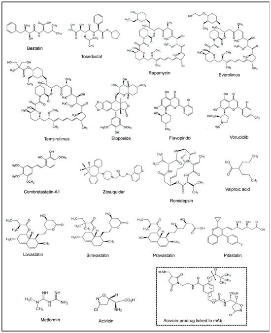 In order to overcome the cytotoxic limitation of bestatin, several bestatin derivatives or analogues, as well as bestatin-conjugates, have been developed [156,157,158]. Among them, tosedostat (CHR-2797) (Figure 2) is a synthetic aminopeptidase inhibitor related to bestatin [159]. Tosedostat has been evaluated in clinical trials for the treatment of AML (Table 1). In phase I/II trials, tosedostat showed acceptable toxicity and encouraging efficacy in R/R AML [160,161] (Table 1). When combined with low-dose cytarabine, decitabine or azacitidine, tosedostat was not associated with major toxic effects in newly diagnosed patients with AML [162], as well as in elderly patients with AML [163] (Table 1). A randomized phase II multicenter study (HOVON 103) confirmed the safety of the combination of tosedostat with standard chemotherapy (Table 1). However, phase II randomized studies with a large AML sample size demonstrated that addition of tosedostat to standard chemotherapy or low-dose cytarabine negatively affected the therapeutic outcome of AML patients due to more infection-related deaths [164,165] (Table 1). Using the pharmacophore fusion strategy, a new bestatin–fluorouracil conjugate was developed and provided a basis for the design of bestatin-based conjugates or hybrids [157]. Furthermore, two bestatin–vorinostat hybrids have been developed as potent APN/CD13 and HDAC dual inhibitors, which exhibit antitumor activity in vitro [158,166].