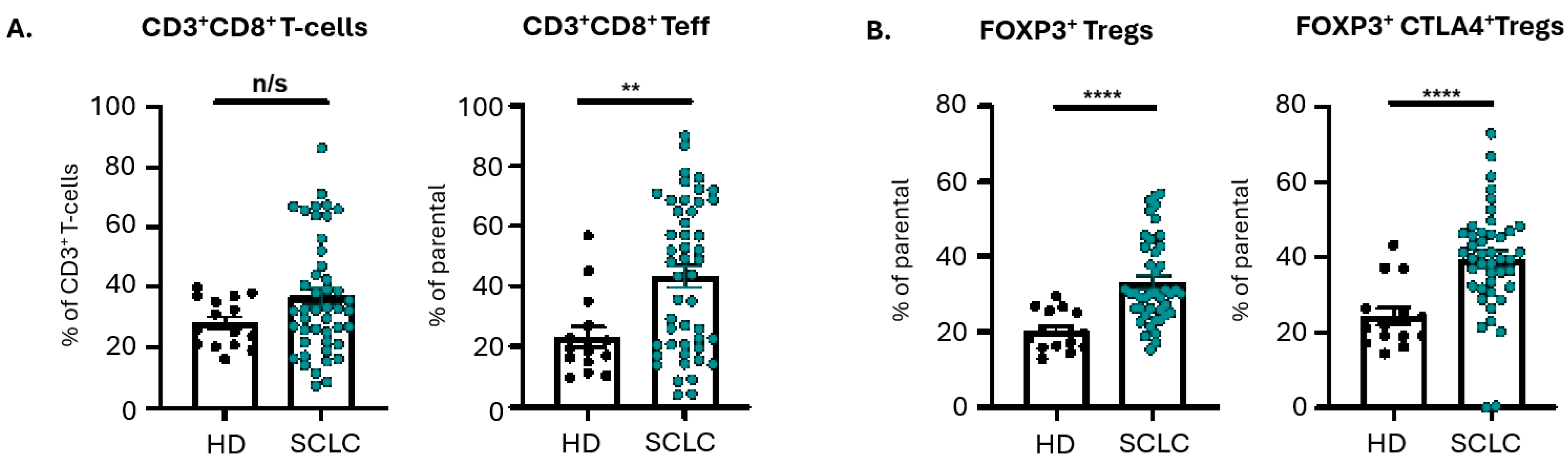 3.1. CD8+ T Effectors and CD4+ Tregs in the Peripheral Blood of SCLC Patients
