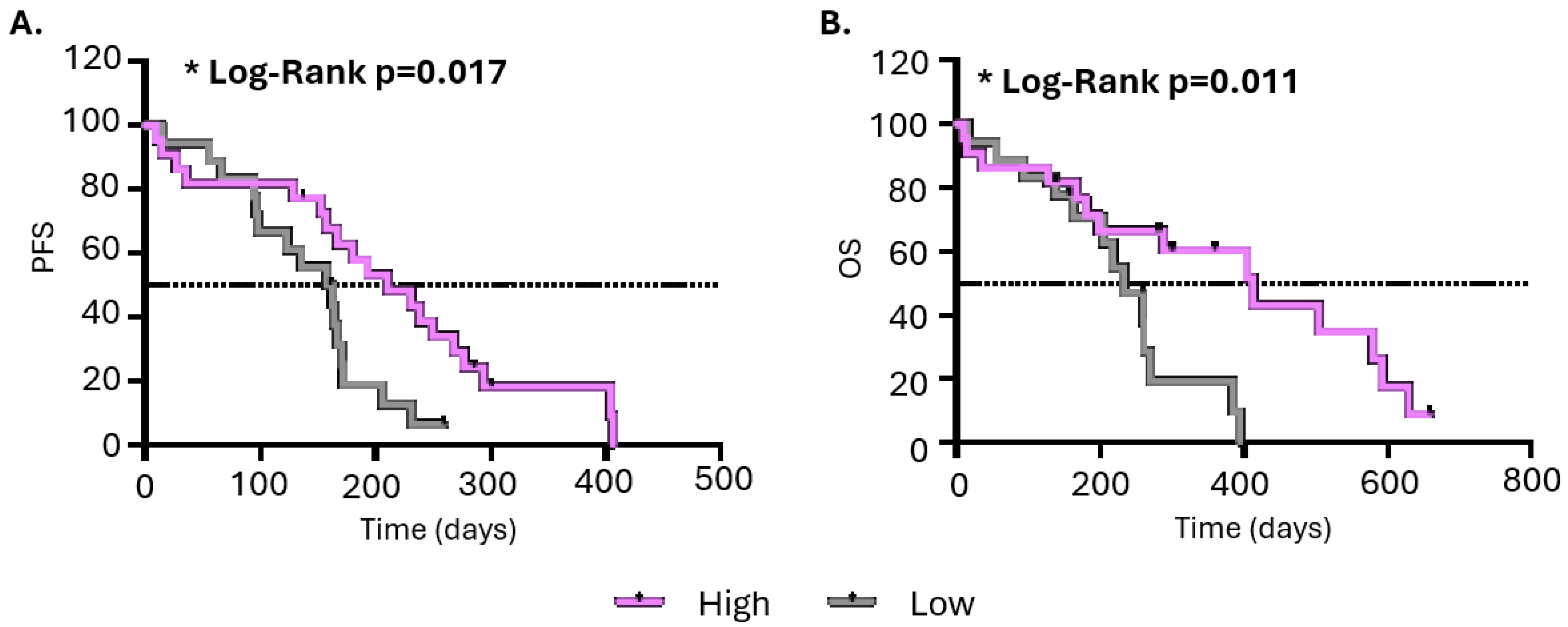 | CD3+CD8+ | 31 | High | 172 | 0.475 to 1.852 | 0.851 | 385 | 0.259 to 1.282 | 0.144 |