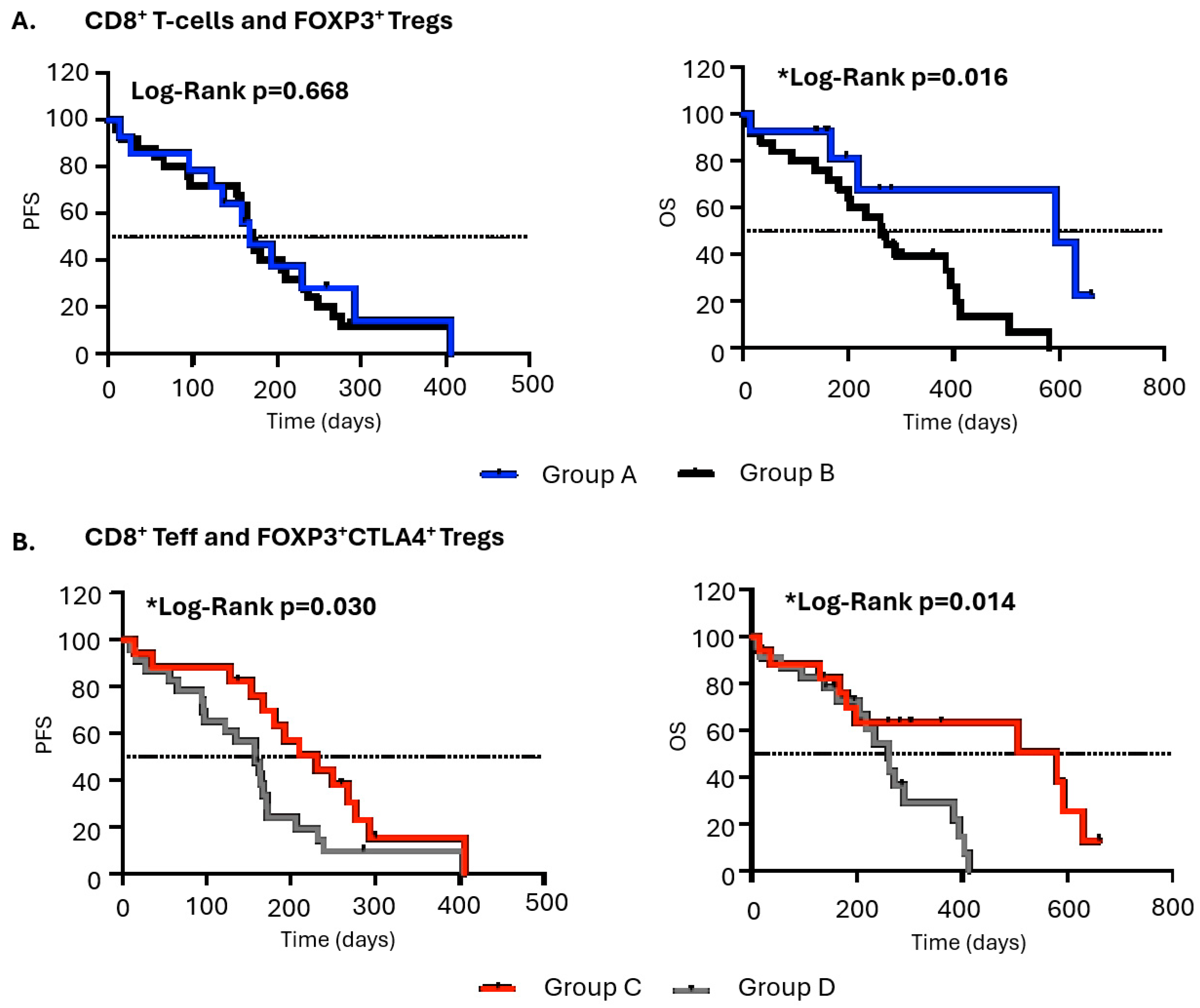 3.2. Correlation of CD8+ T Effectors and CD4+ Tregs with Clinical Outcome