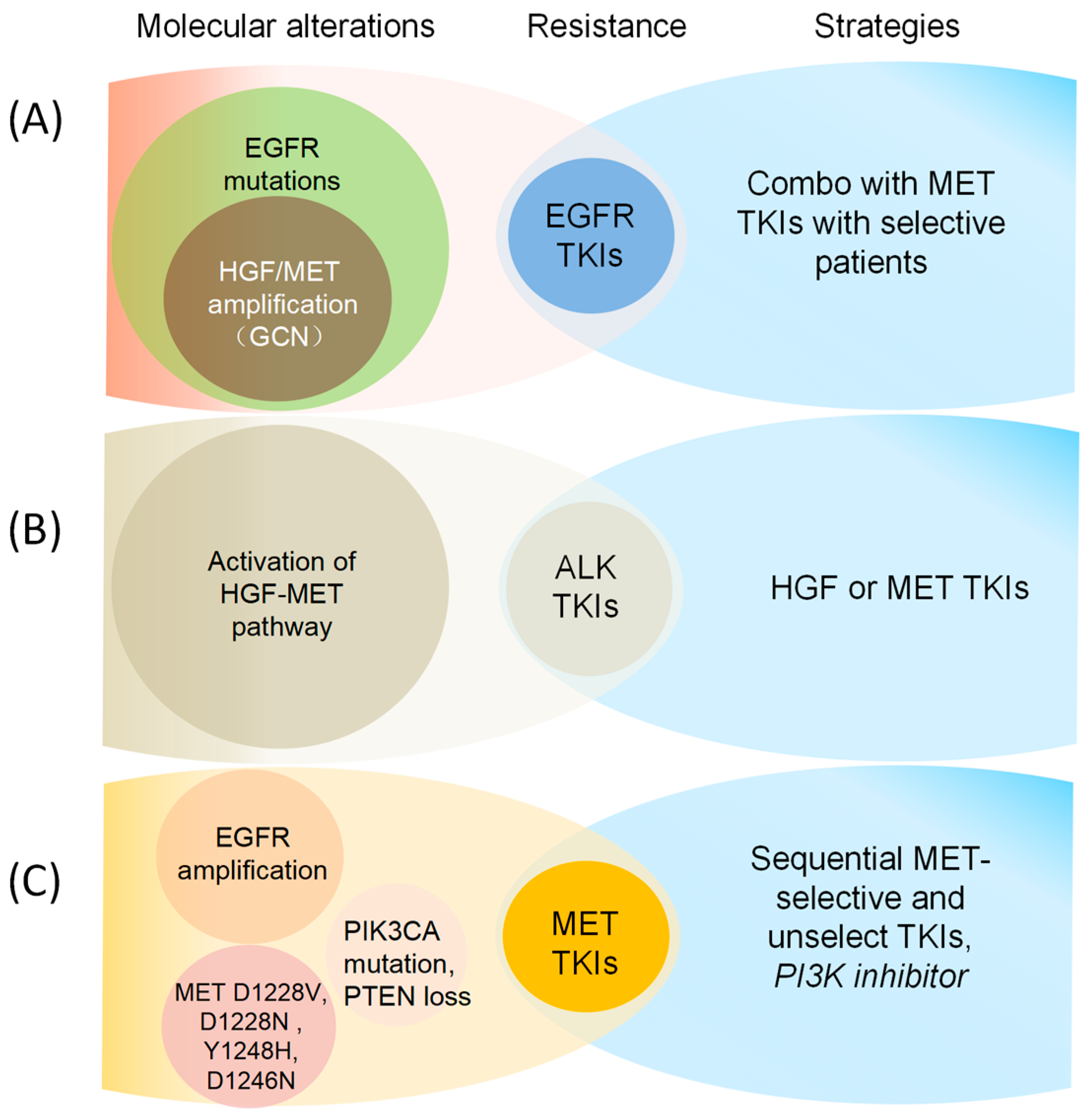 - Ko, B.; He, T.; Gadgeel, S.; Halmos, B. MET/HGF pathway activation as a paradigm of resistance to targeted therapies. Ann. Transl. Med. 2017, 5, 4. [Google Scholar] [CrossRef]