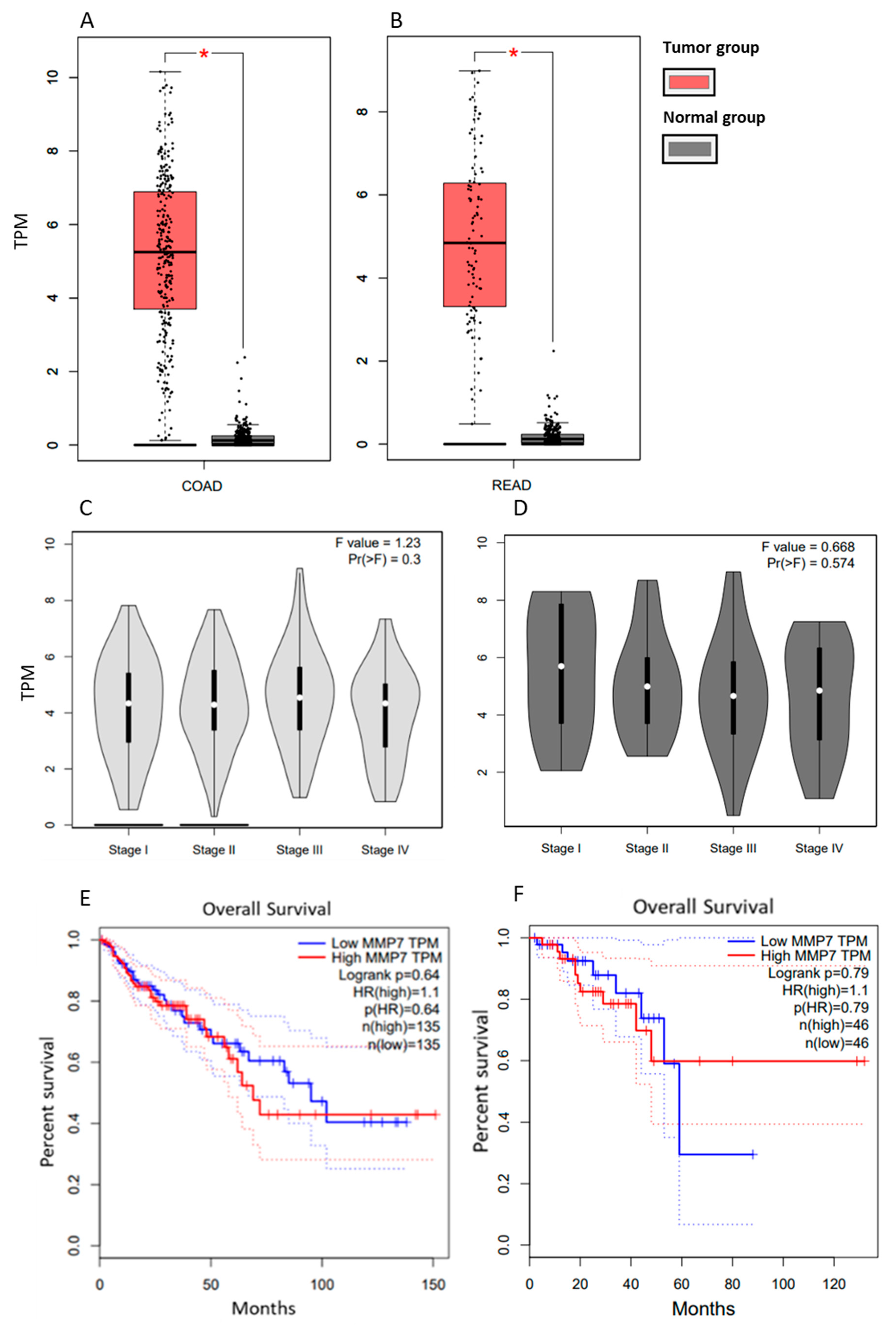 3.1. Gene Expression of MMP-7 from the Database Gepia