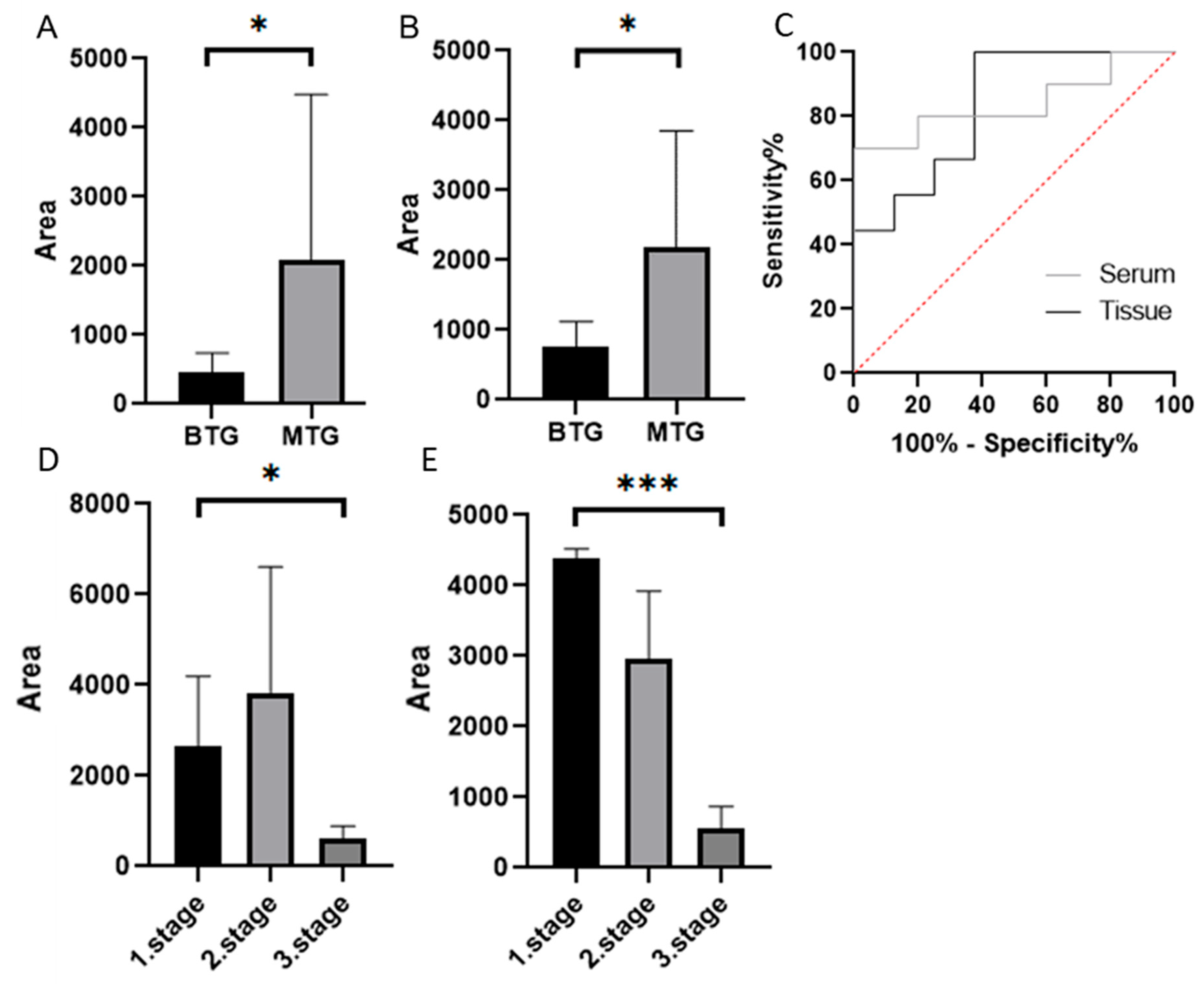 | Tissue MMP-7 (ng/mL) | Serum MMP-7 (ng/mL) | |