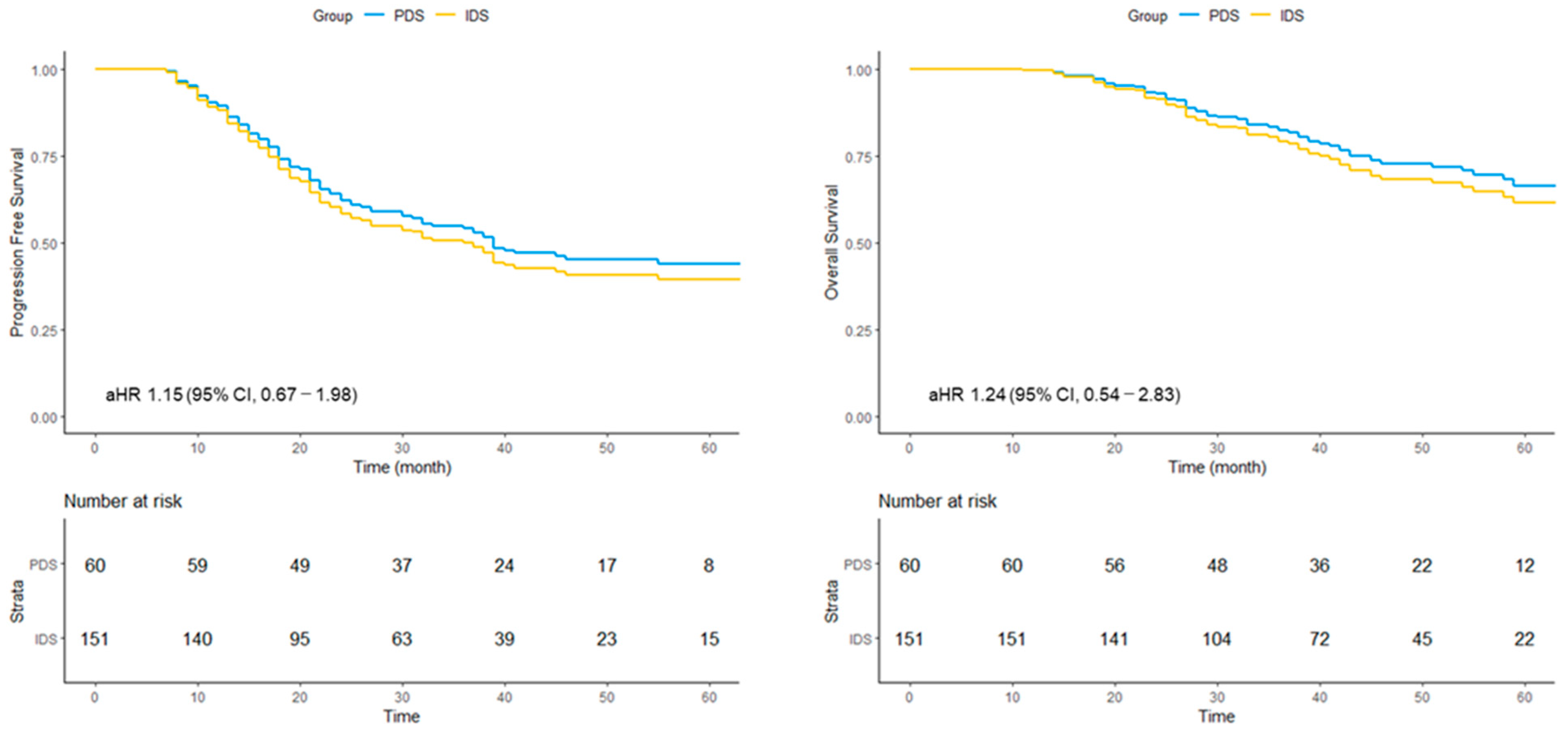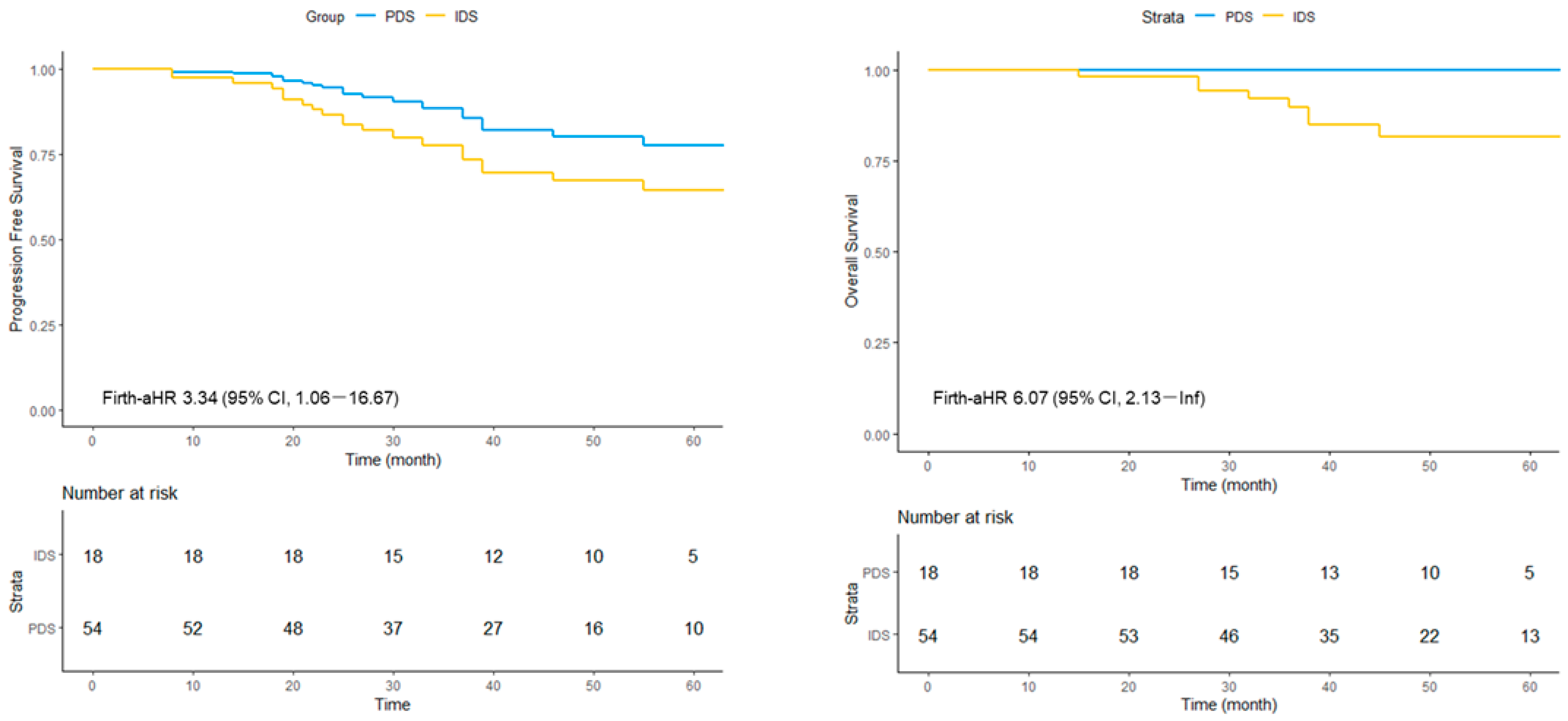 3.2. Survival Analysis Comparing PDS and IDS in the Overall Cohort