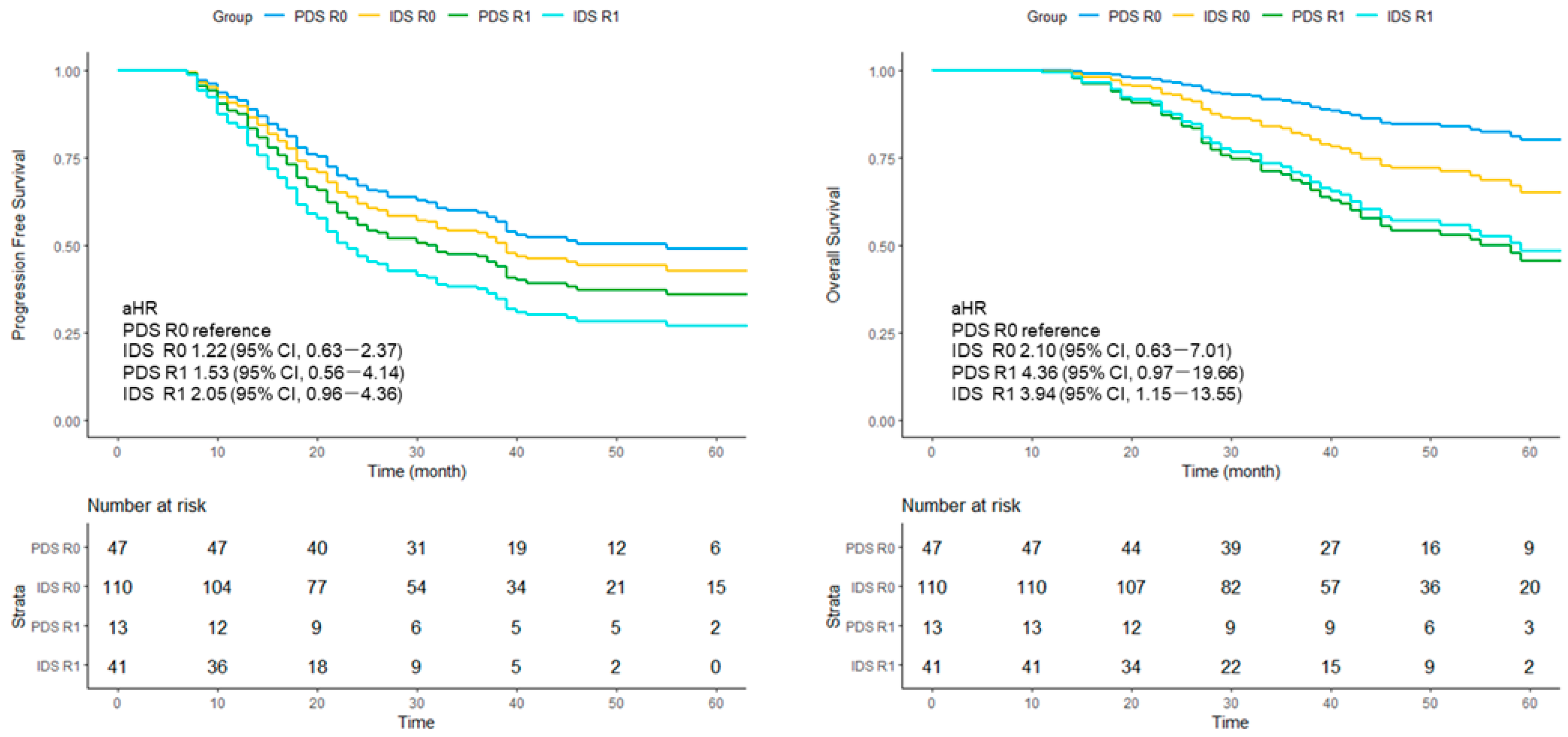 | Residual disease, n (%) | R0 † | 47 (78.3) | 110 (72.8) |