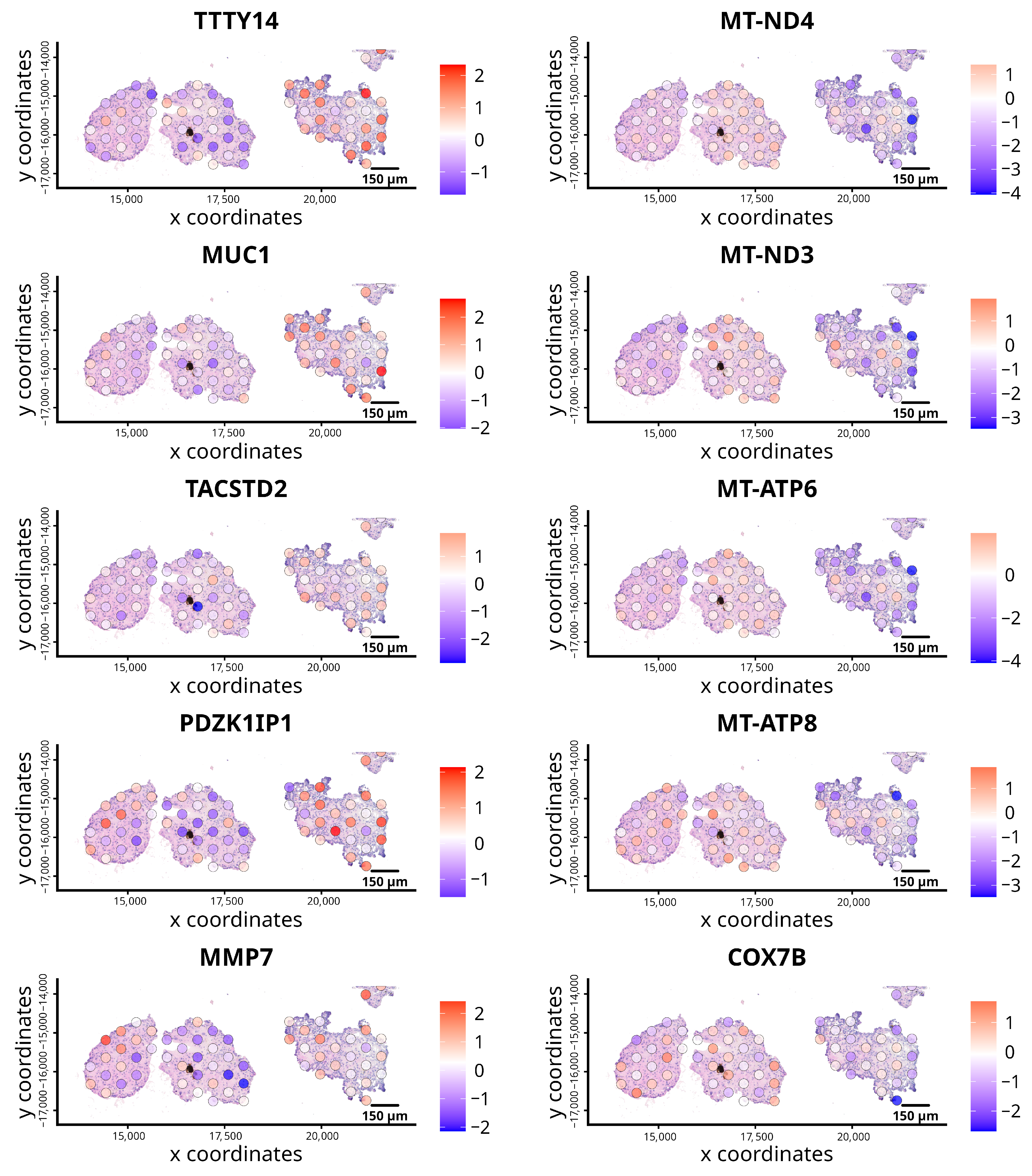 - Lebrigand, K.; Bergenstråhle, J.; Thrane, K.; Mollbrink, A.; Meletis, K.; Barbry, P.; Waldmann, R.; Lundeberg, J. The spatial landscape of gene expression isoforms in tissue sections. Nucleic Acids Res. 2023, 51, e47. [Google Scholar] [CrossRef] [PubMed]