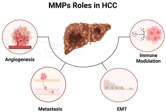 MMPs occupy a central and multifaceted position in the pathobiology of hepatocellular carcinoma and related primary liver malignancies. Far from acting solely as extracellular matrix-degrading enzymes, MMPs function as dynamic regulators of tumor–stroma interactions, angiogenesis, immune modulation, and metastatic competence within the chronically inflamed and fibrotic hepatic microenvironment. The evidence synthesized in this review demonstrates that dysregulated expression and activation of multiple MMP family members, most prominently gelatinases MMP-2 and MMP-9 and the membrane-type protease MMP-14, are tightly linked to aggressive tumor phenotypes, vascular invasion, immune exclusion, therapeutic resistance, and poor clinical outcomes. These associations are reinforced across experimental systems, human tumor specimens, and clinical correlative studies, underscoring the biological and translational relevance of MMP-driven programs in HCC progression.