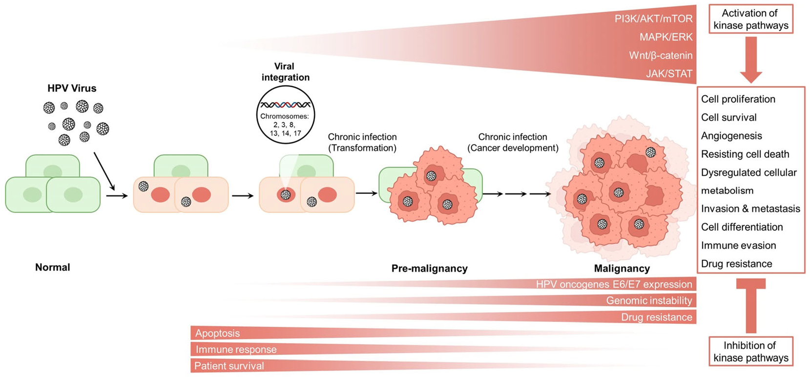 Chicago/Turabian StyleKarnik, Medha, SubbaRao V. Tulimilli, Preethi G. Anantharaju, Anjali Devi S. Bettadapura, Suma M. Natraj, Habeeb S. Mohideen, Sinisa Dovat, Arati Sharma, and SubbaRao V. Madhunapantula. 2026. "An Overview of the Mechanisms of HPV-Induced Cervical Cancer: The Role of Kinase Targets in Pathogenesis and Drug Resistance" Cancers 18, no. 2: 318. https://doi.org/10.3390/cancers18020318