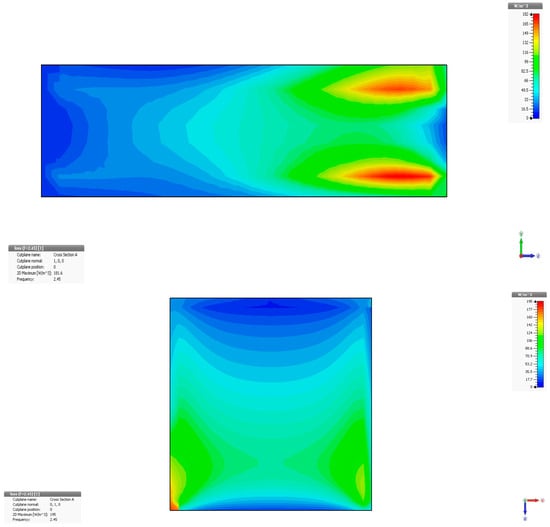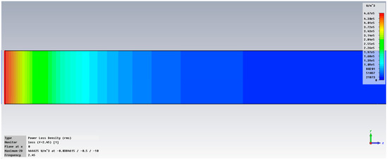 The synthesis of the simulation results is presented in Figure 4 for the addition of 0.1% OA-Fe3O4 inserts. The simulation concerns the penetration of the electromagnetic field in a vertical profile (y-z).