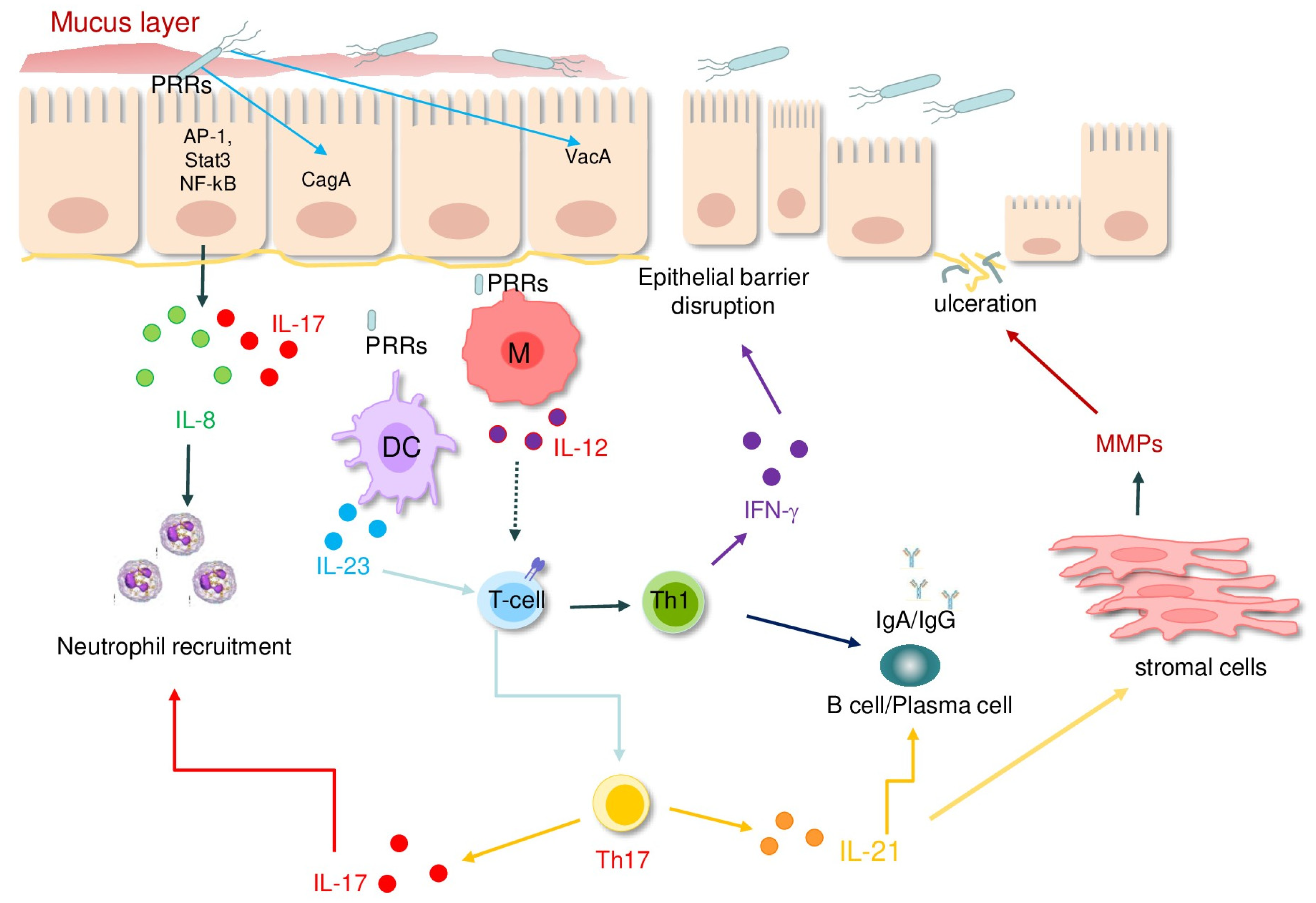 2. Molecular and Cellular Mechanisms of H. pylori-Induced Gastritis