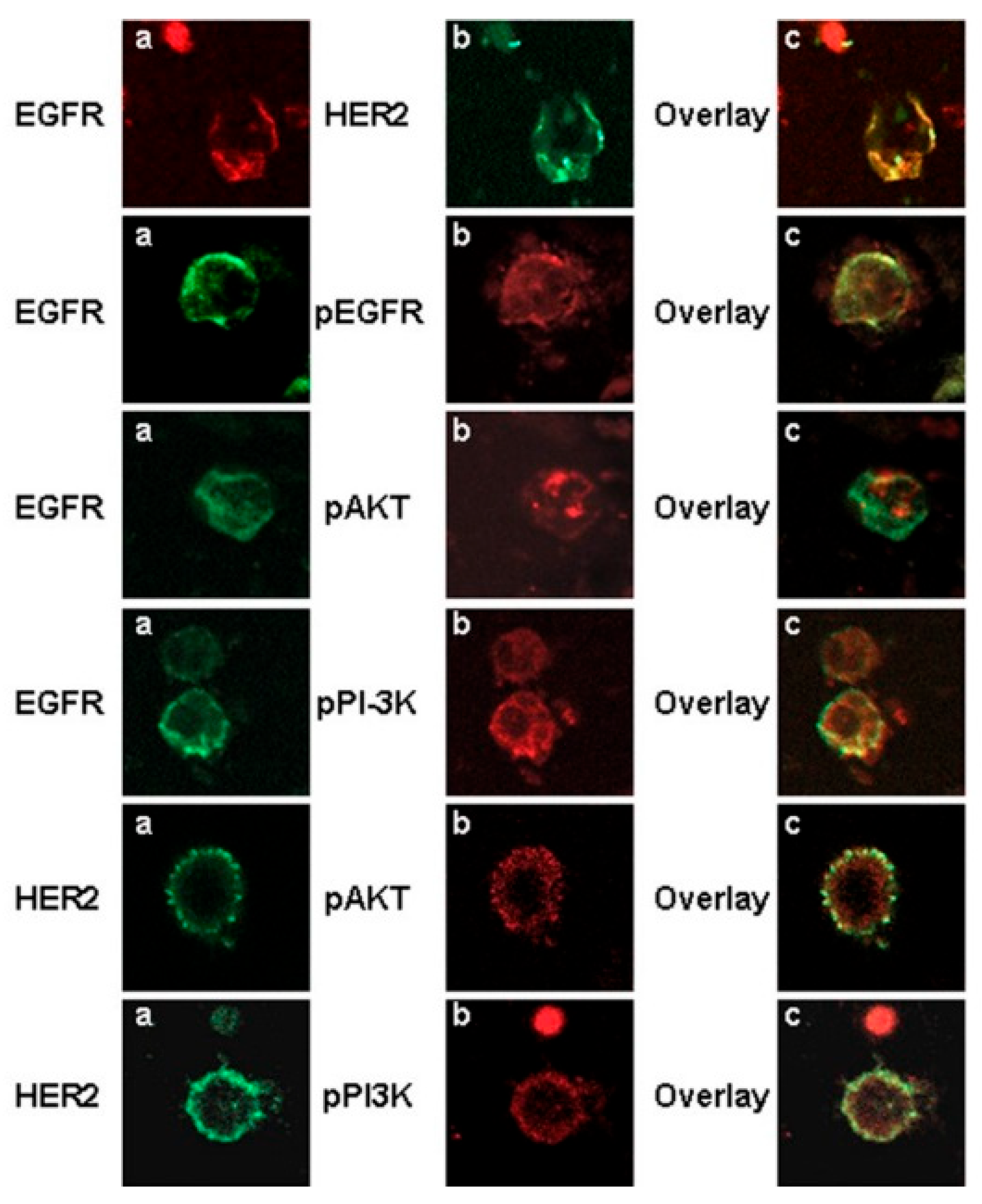 - Kallergi, G.; Agelaki, S.; Kalykaki, A.; Stournaras, C.; Mavroudis, D.; Georgoulias, V. Phosphorylated EGFR and PI3K/Akt Signaling Kinases Are Expressed in Circulating Tumor Cells of Breast Cancer Patients. Breast Cancer Res. 2008, 10, R80. [Google Scholar] [CrossRef] [PubMed]