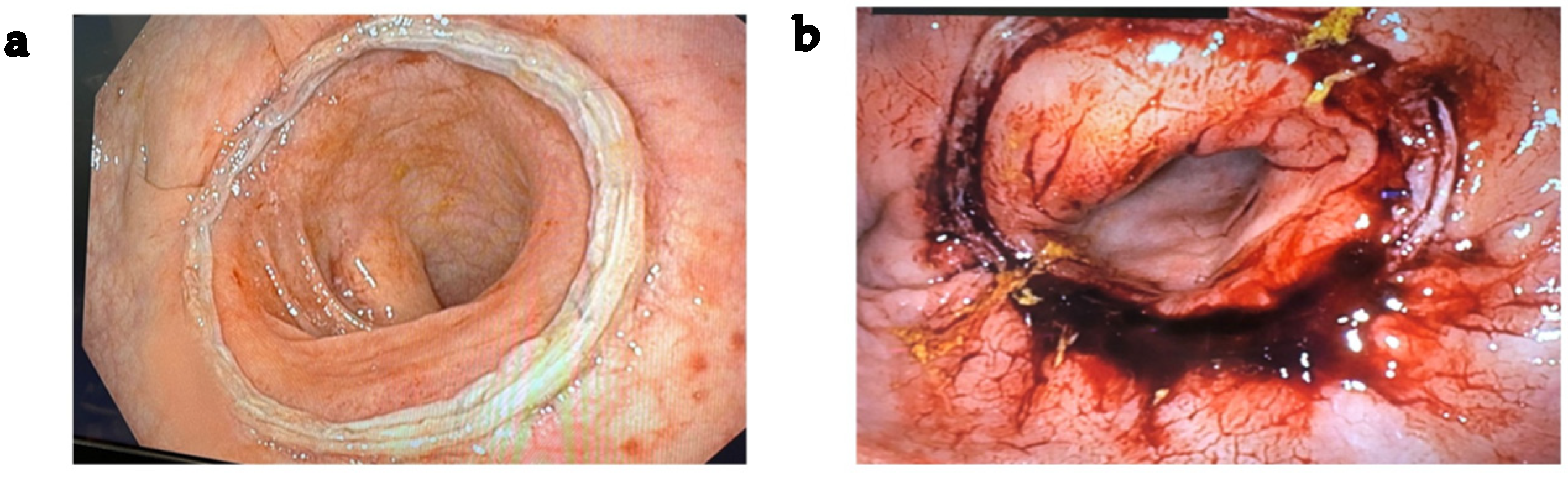 - Barzola, E.; Planellas, P.; Torres-Acevedo, N.; Bergamaschi, R. Perioperative Assessment of Colorectal Anastomoses with Flexible Endoscopy. Updates Surg. 2025, 77, 139–142. [Google Scholar] [CrossRef]