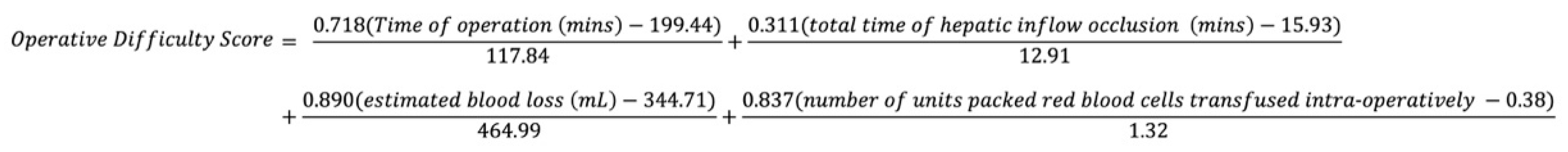 - Pothet, C.; Drumez, E.; Joosten, A.; Genin, M.; Hobeika, C.; Mabrut, J.Y.; Gregoire, E.; Regimbeau, J.M.; Bonal, M.; Farges, O.; et al. Predicting Intraoperative Difficulty of Open Liver Resections: The DIFF-scOR Study, An Analysis of 1393 Consecutive Hepatectomies From a French Multicenter Cohort. Ann. Surg. 2021, 274, 805–813. [Google Scholar] [CrossRef]