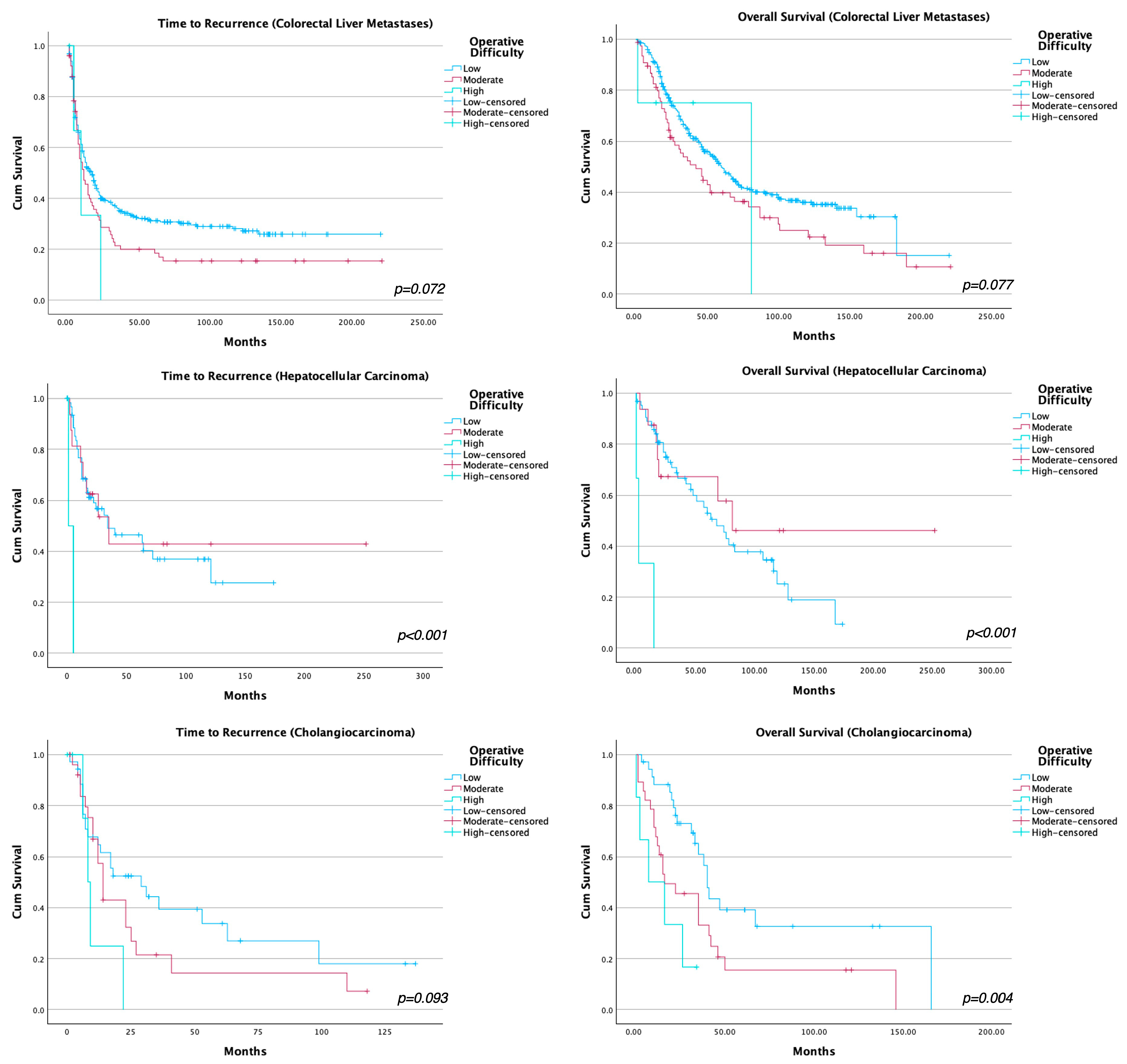 3.3. Long-Term Outcomes Stratified by Operative Difficulty