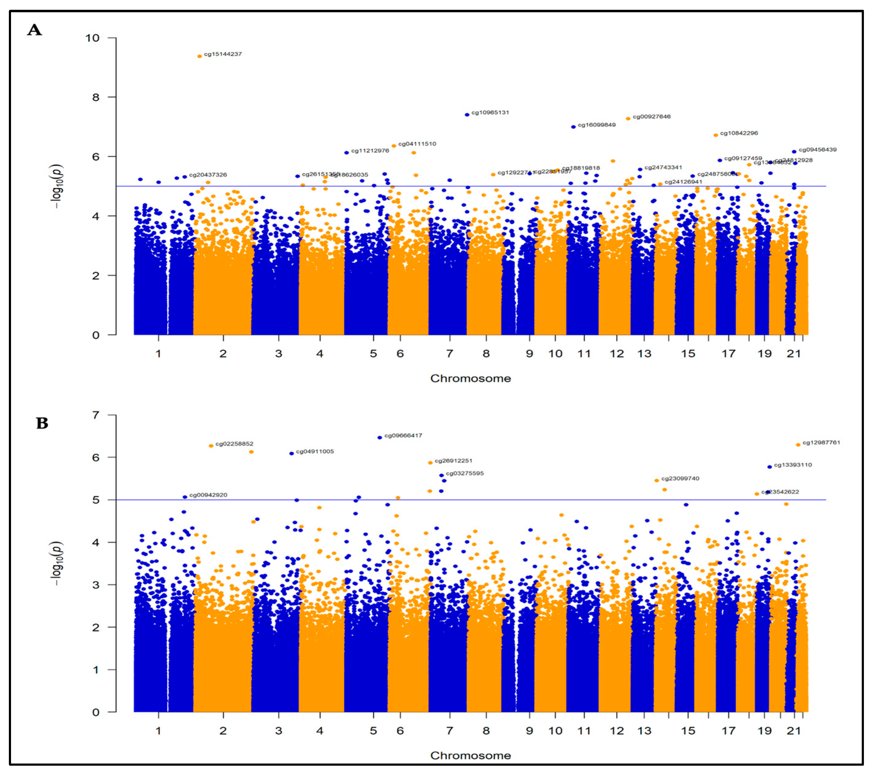 - Du, P.; Zhang, X.; Huang, C.C.; Jafari, N.; Kibbe, W.A.; Hou, L.; Lin, S.M. Comparison of Beta-value and M-value methods for quantifying methylation levels by microarray analysis. BMC Bioinform. 2010, 11, 587. [Google Scholar] [CrossRef]