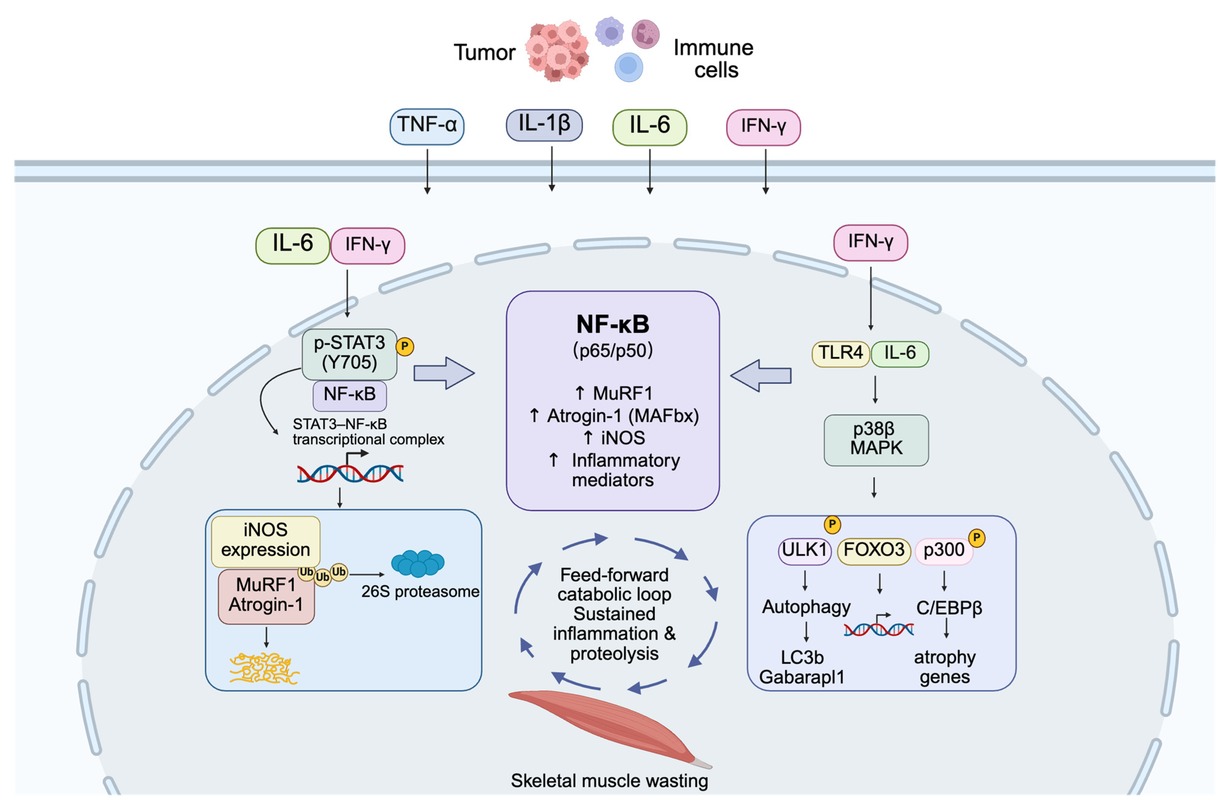 3.1. Cytokine-Driven NF-κB Activation and Its Catabolic Impact in Cancer Cachexia