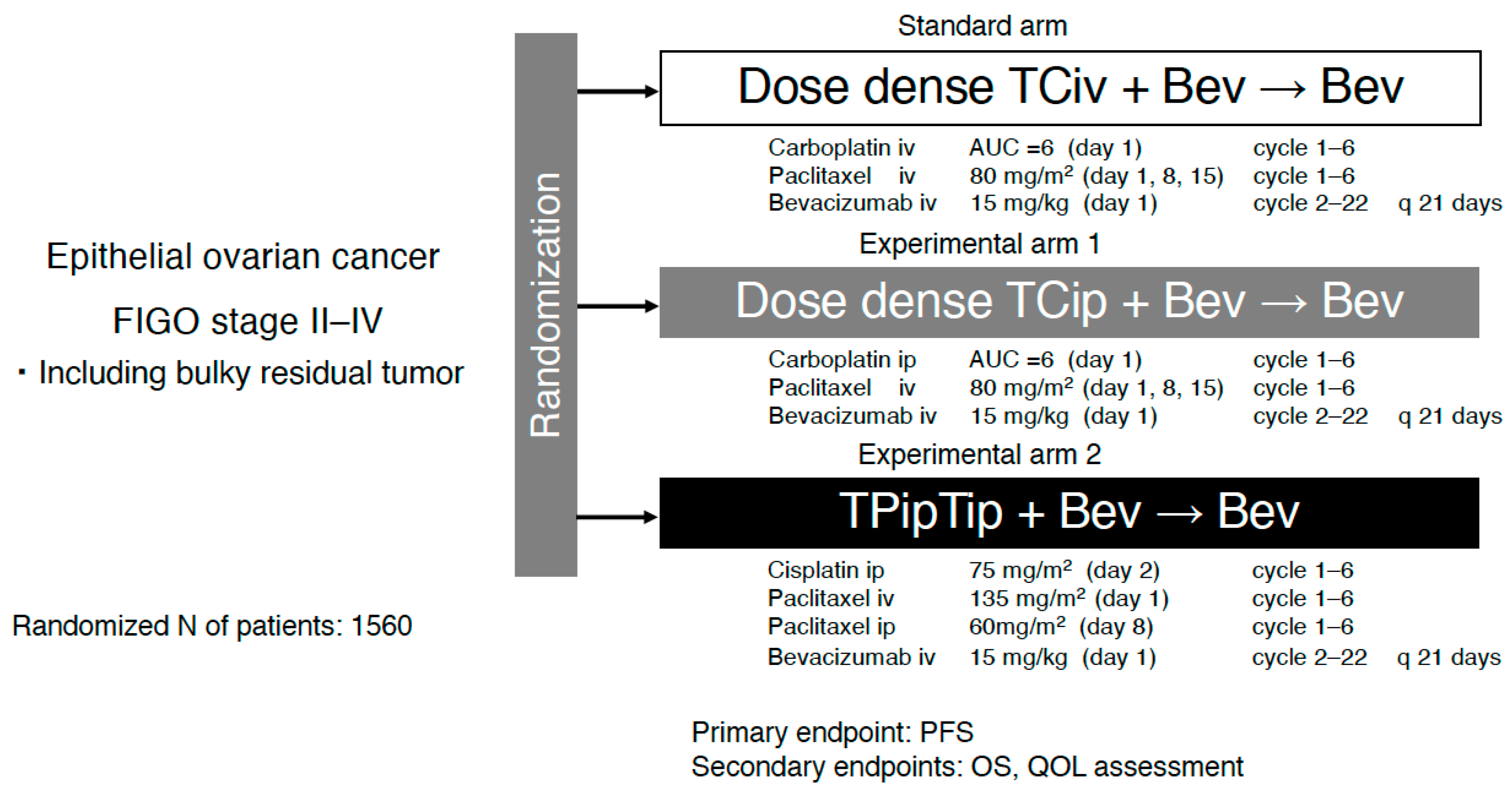 Furthermore, there were notable differences in patient populations and surgical pathways. The iPocc trial enrolled patients with FIGO stage II–IV epithelial ovarian cancer and specifically addressed whether IP carboplatin could improve outcomes even in patients with suboptimal cytoreduction after primary debulking surgery (PDS) [