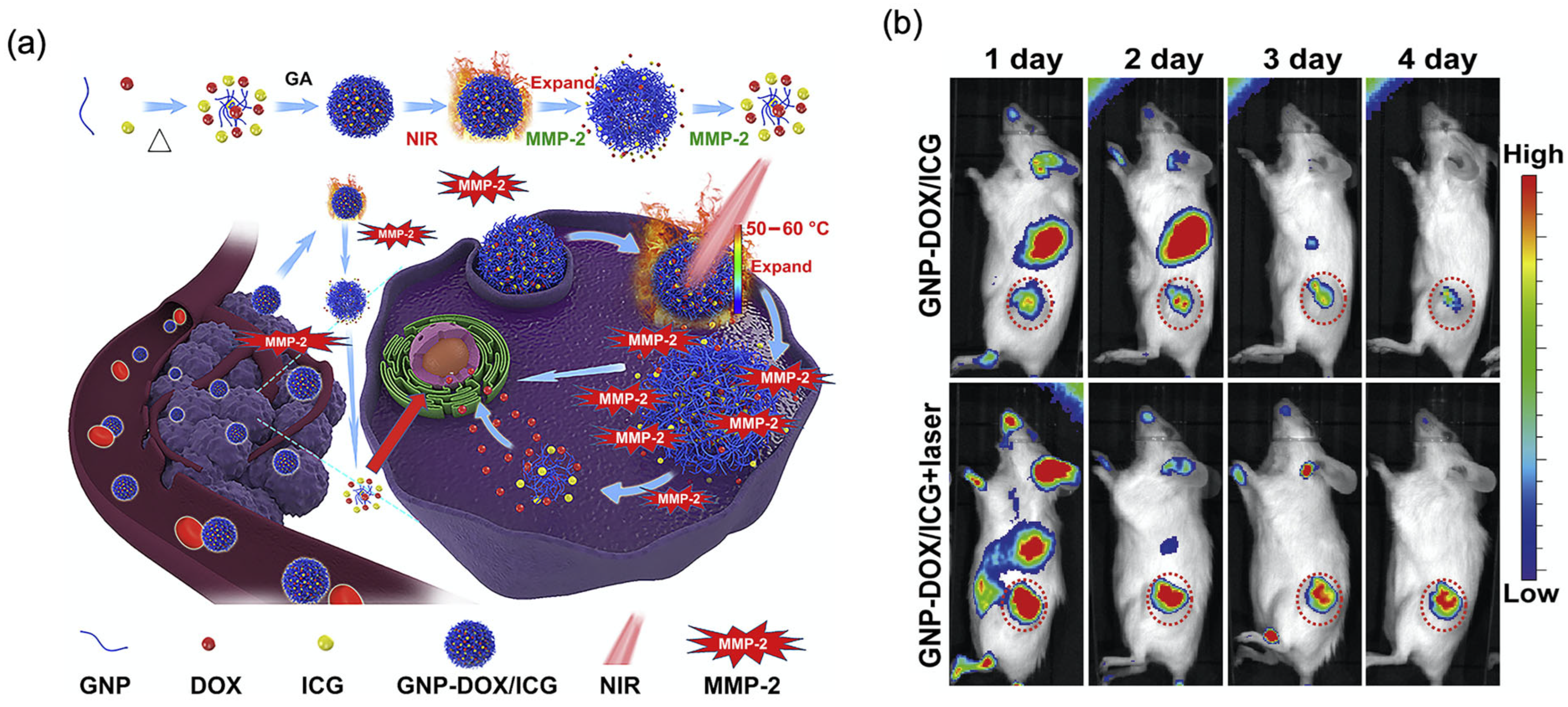 - Chen, X.; Zou, J.; Zhang, K.; Zhu, J.; Zhang, Y.; Zhu, Z.; Zheng, H.; Li, F.; Piao, J.-G. Photothermal/matrix metalloproteinase-2 dual-responsive gelatin nanoparticles for breast cancer treatment. Acta Pharm. Sin. B 2021, 11, 271–282. [Google Scholar] [CrossRef]