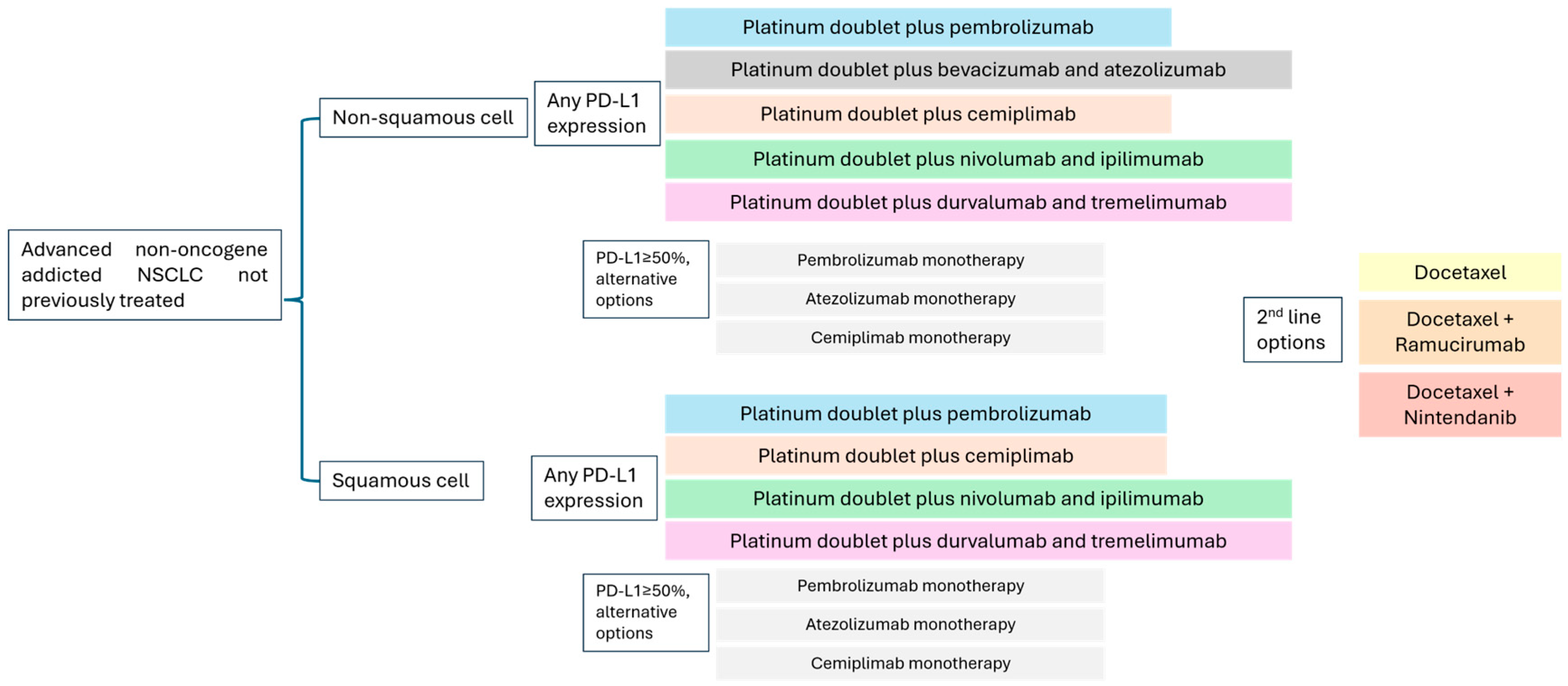 - Frost, N.; Reck, M. Non–Small Cell Lung Cancer Metastatic Without Oncogenic Alterations. Am. Soc. Clin. Oncol. Educ. Book 2024, 44, e432524. [Google Scholar] [CrossRef] [PubMed]